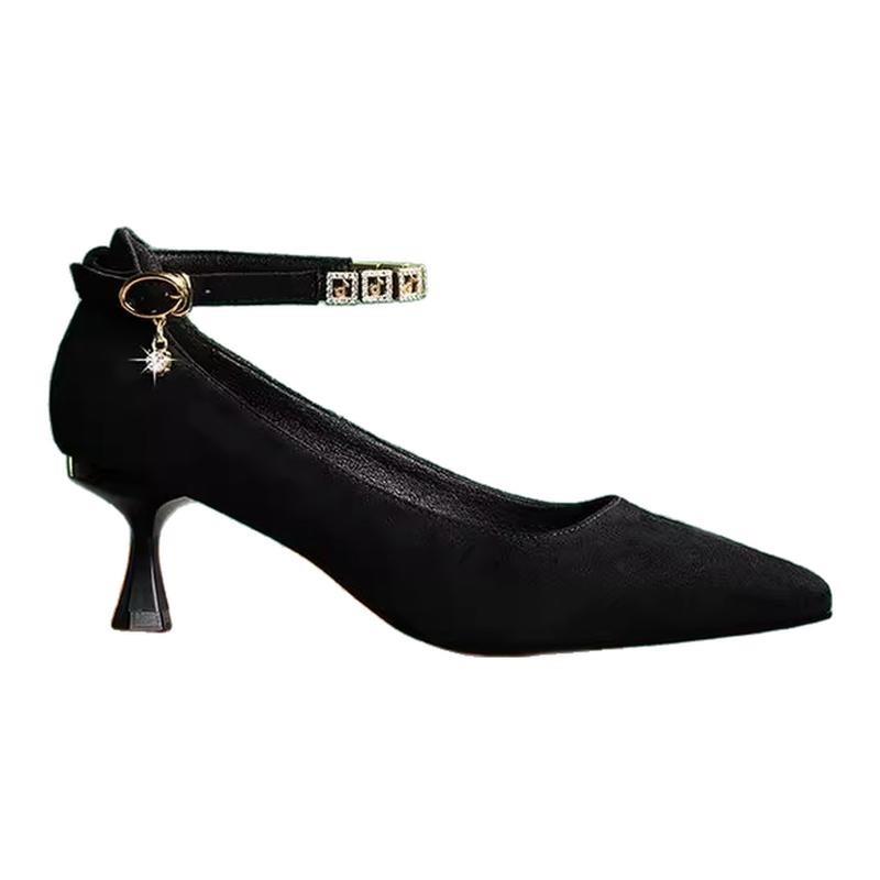 百搭一字扣带浅口单鞋女2025春夏季新款休闲 百搭细跟配旗袍高跟