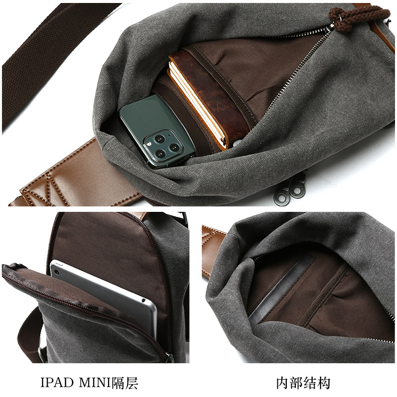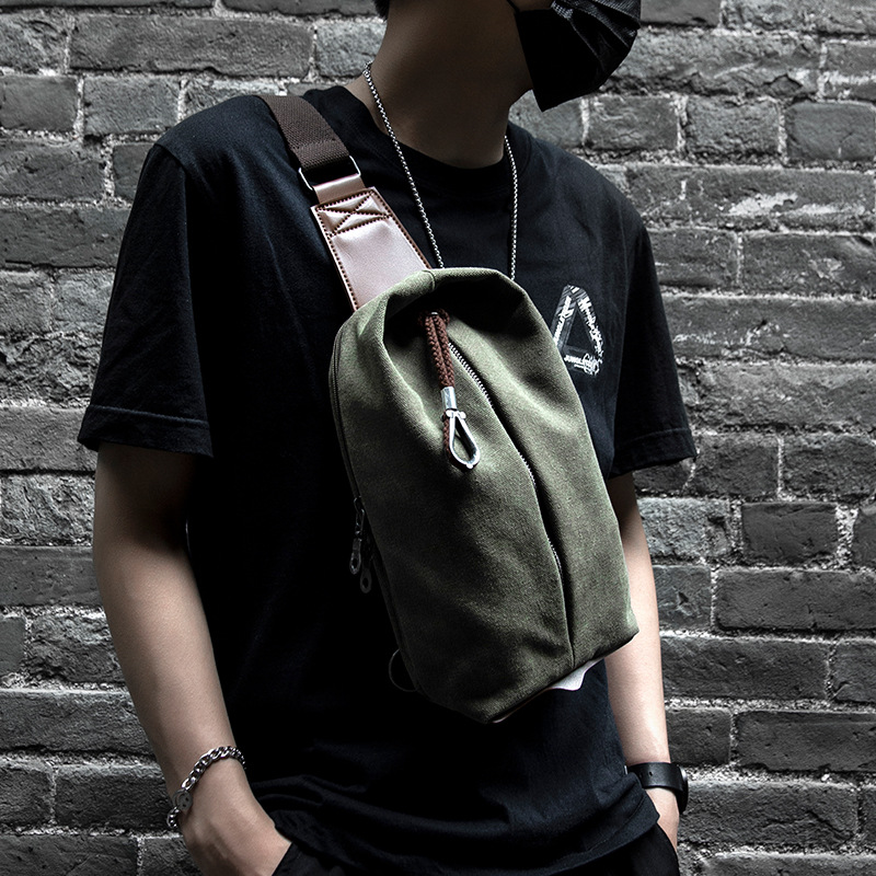 日本品质现货潮流胸包休闲帆布包大容量斜挎包男复古单肩包简约学