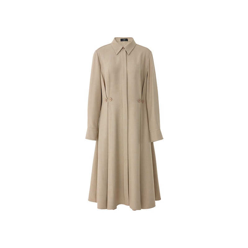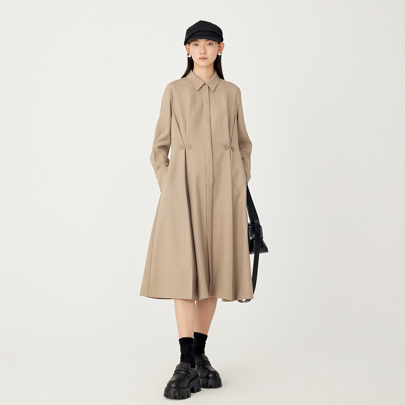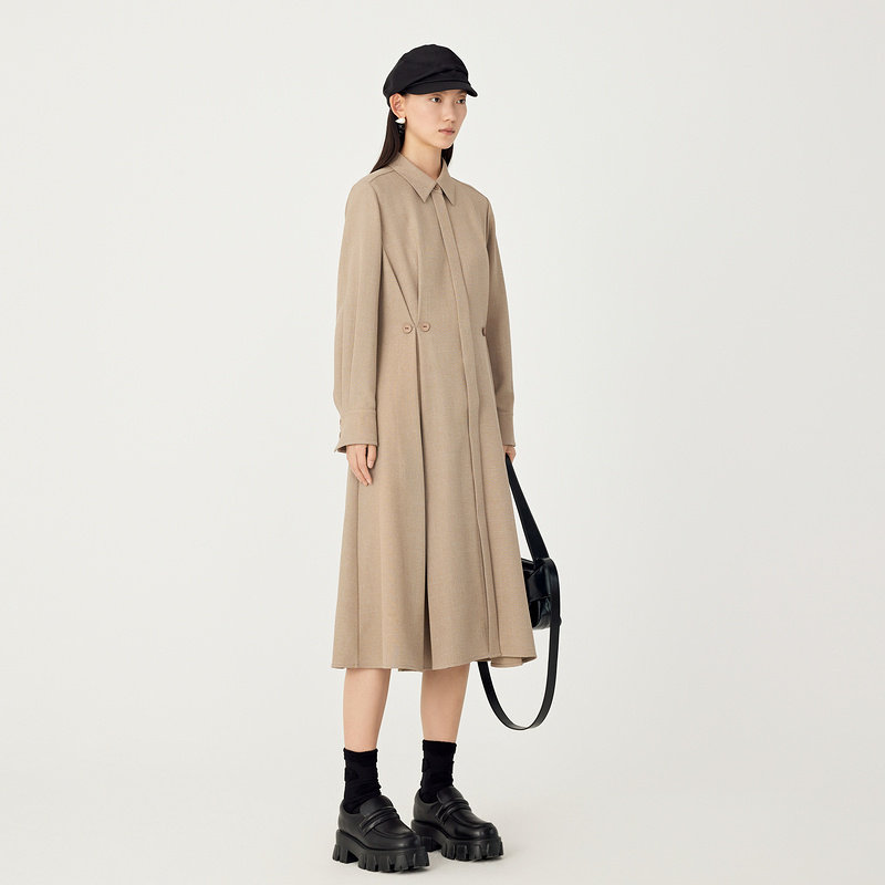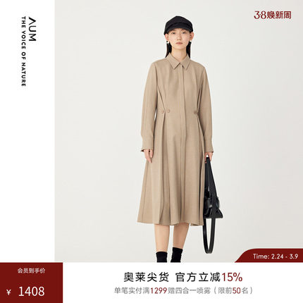 AUM噢姆冬季简约咖色收腰衬衫连衣裙女