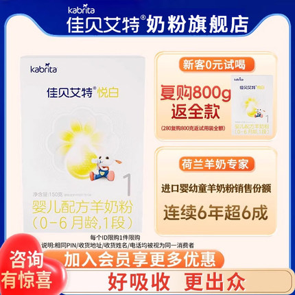 U佳贝艾特悦白羊奶粉1段150g奶粉旗舰店一段奶粉试用装