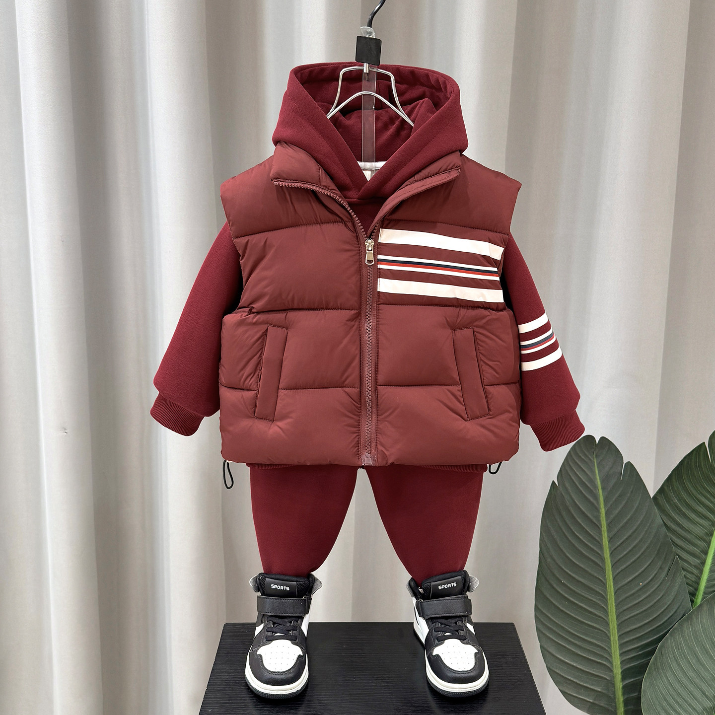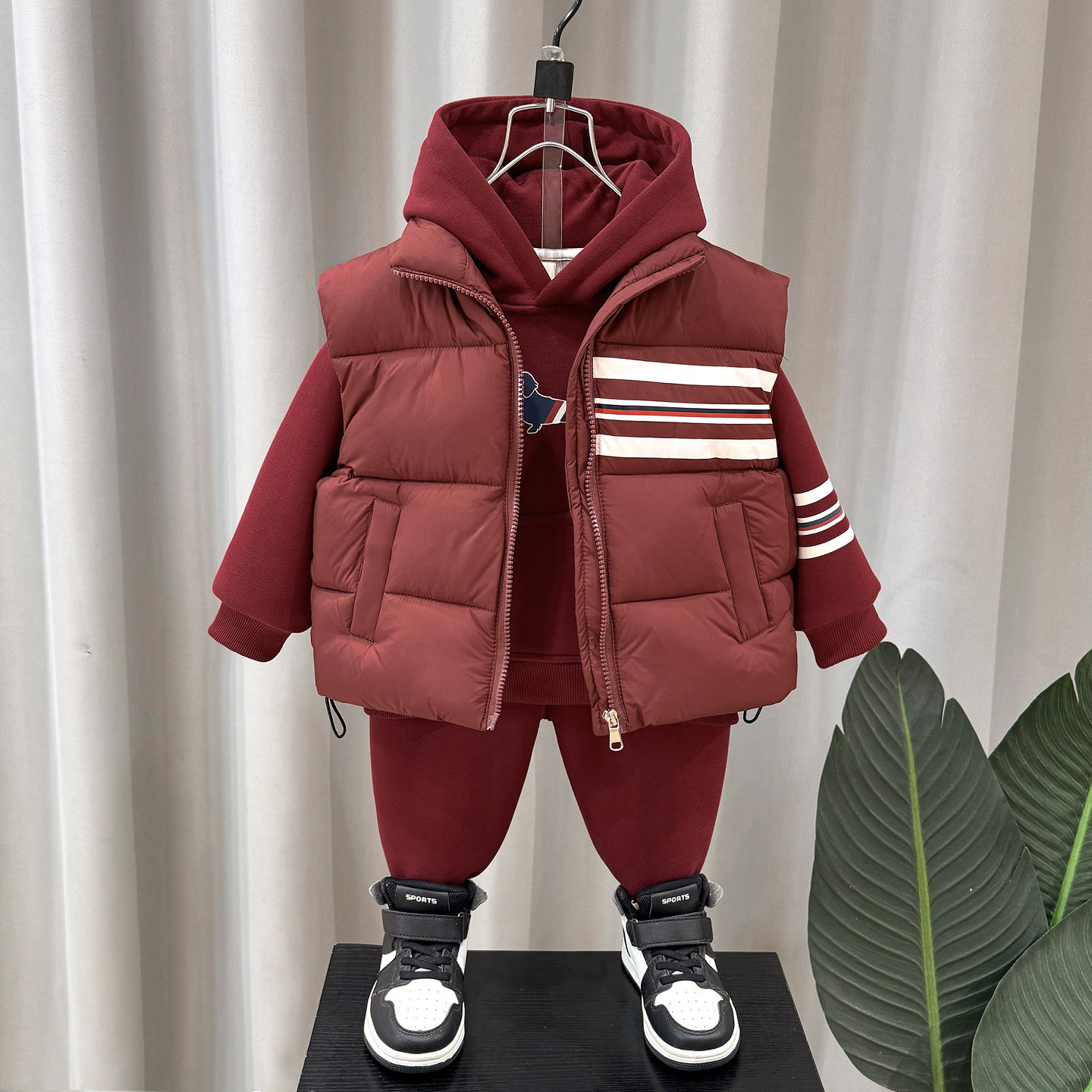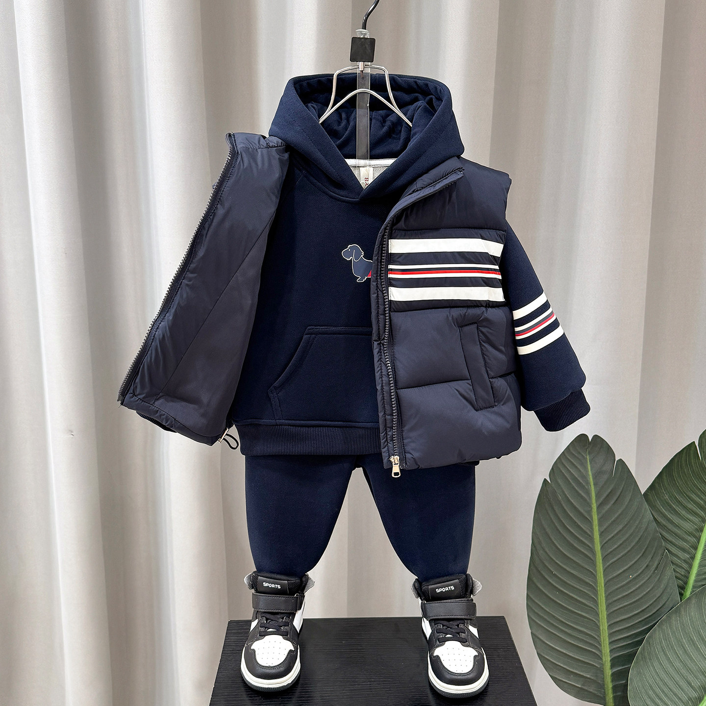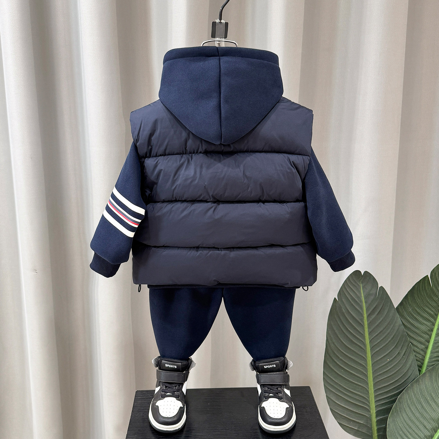 男童冬季加绒卫衣套装2025新款男宝宝洋气加厚马甲儿童冬装三件套