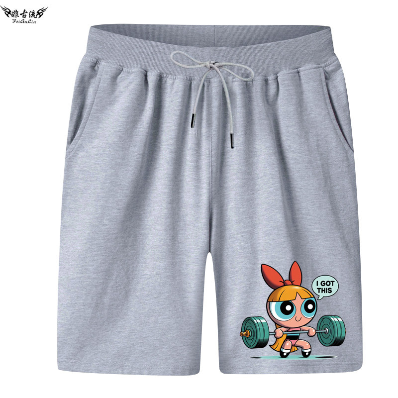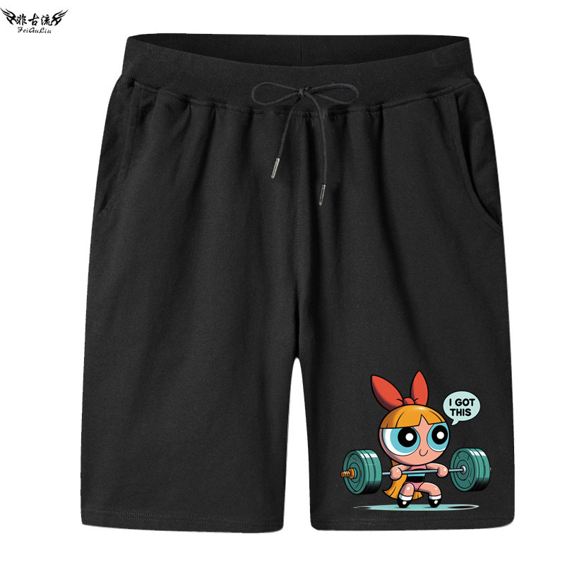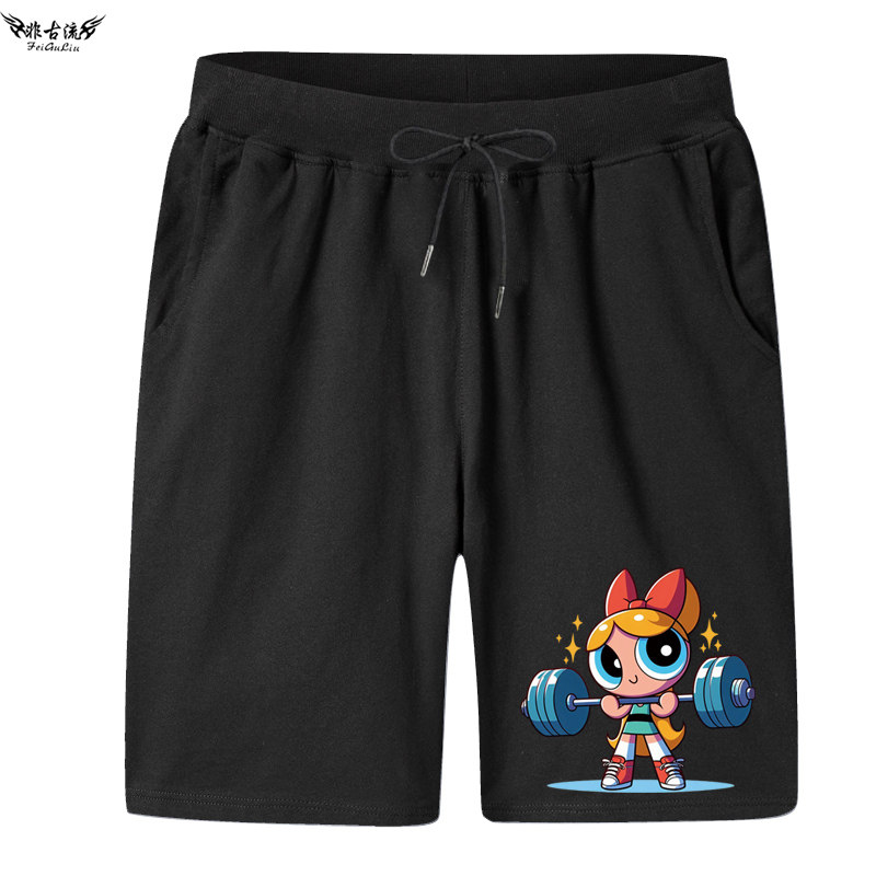 飞天小女警周边健身运动短裤男女情侣装可爱夏季五分裤休闲沙滩裤