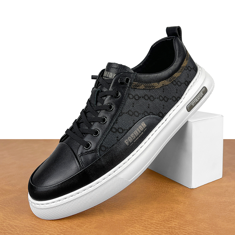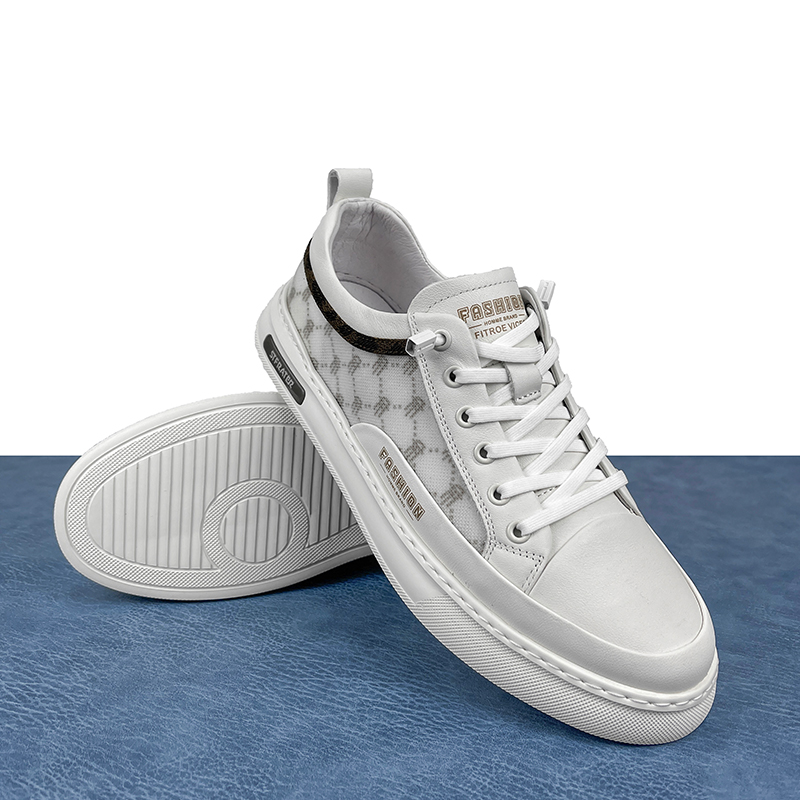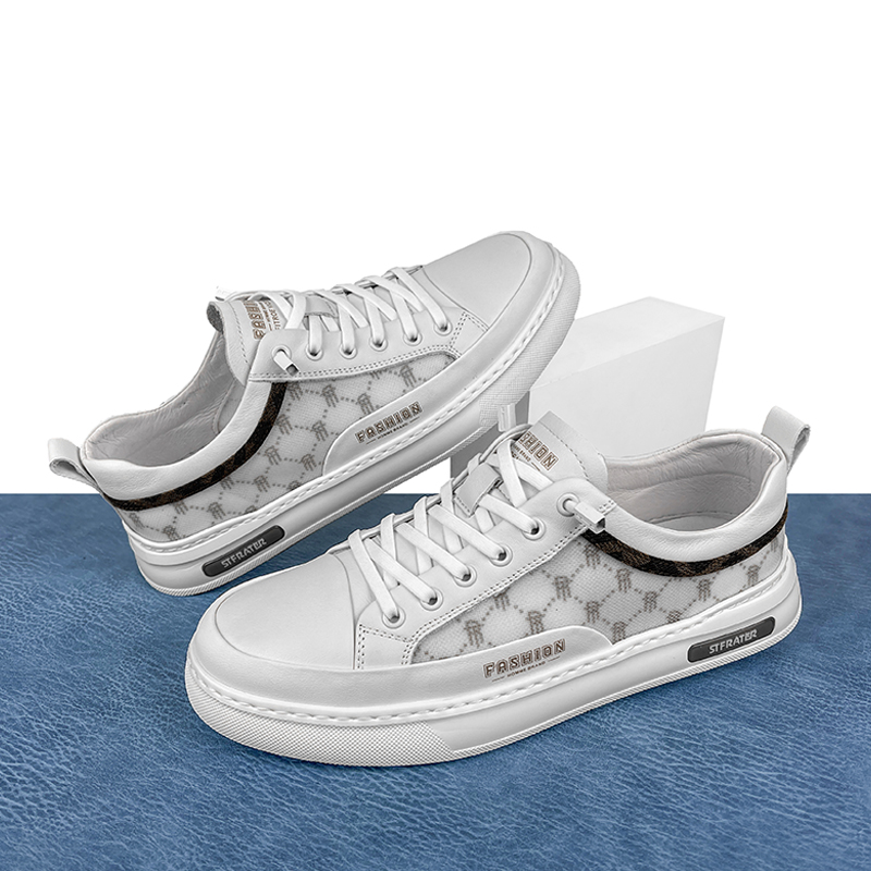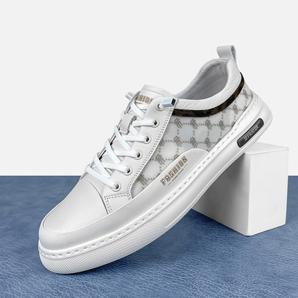 板鞋男夏季新款真皮网布透气时尚小白鞋百搭爆款轻便系带休闲鞋
