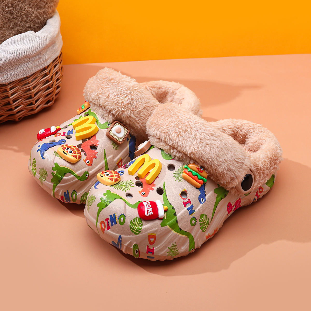 儿童棉鞋男童棉拖鞋2025新款秋冬季室内家居男洞洞鞋保暖加绒防滑