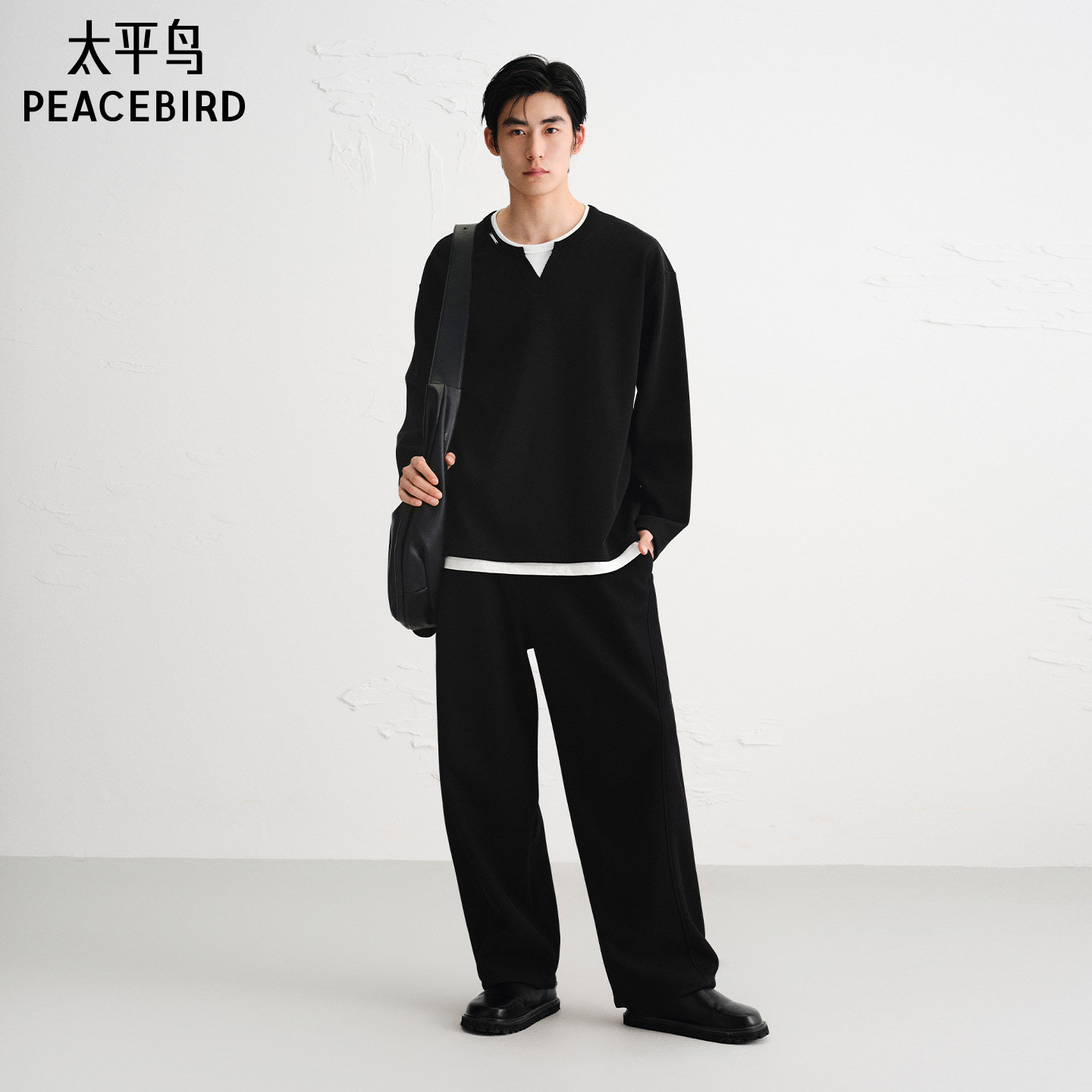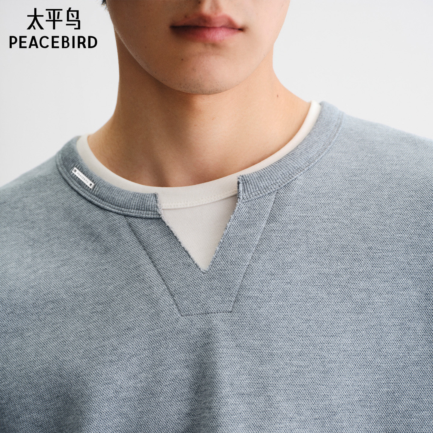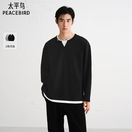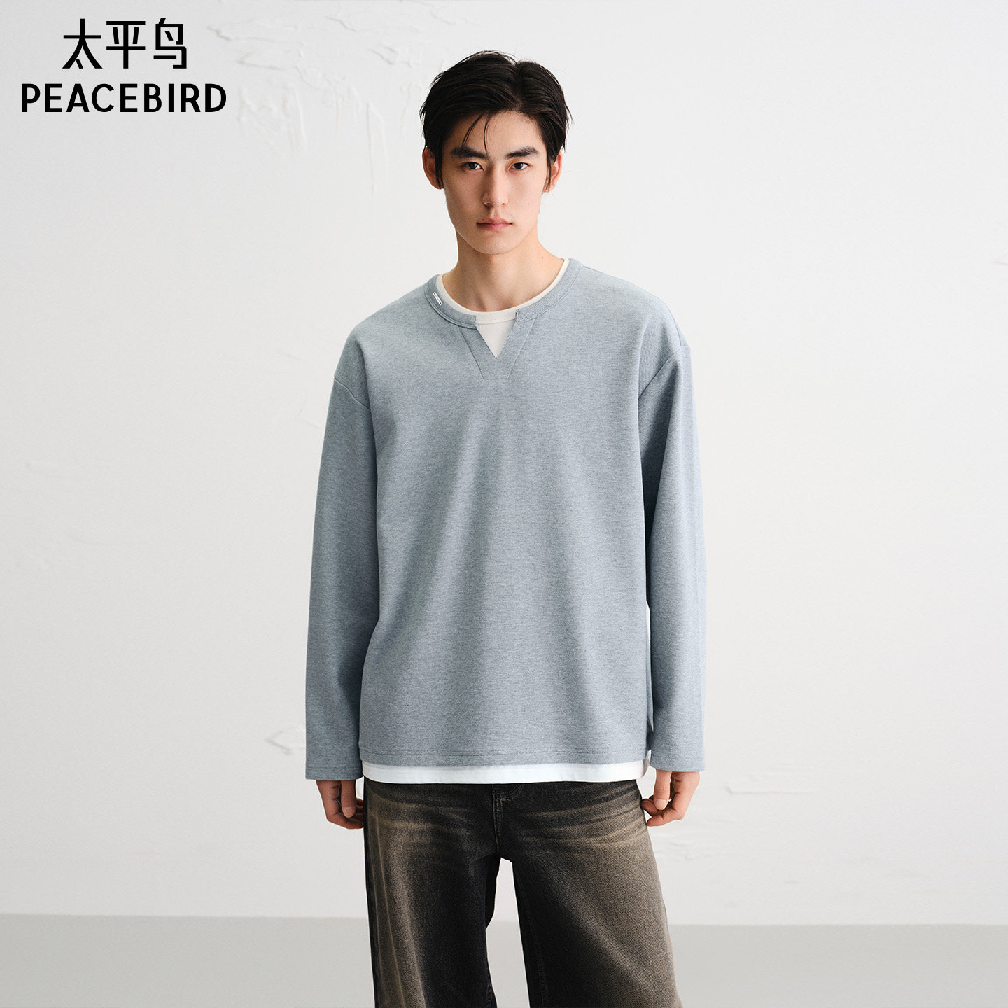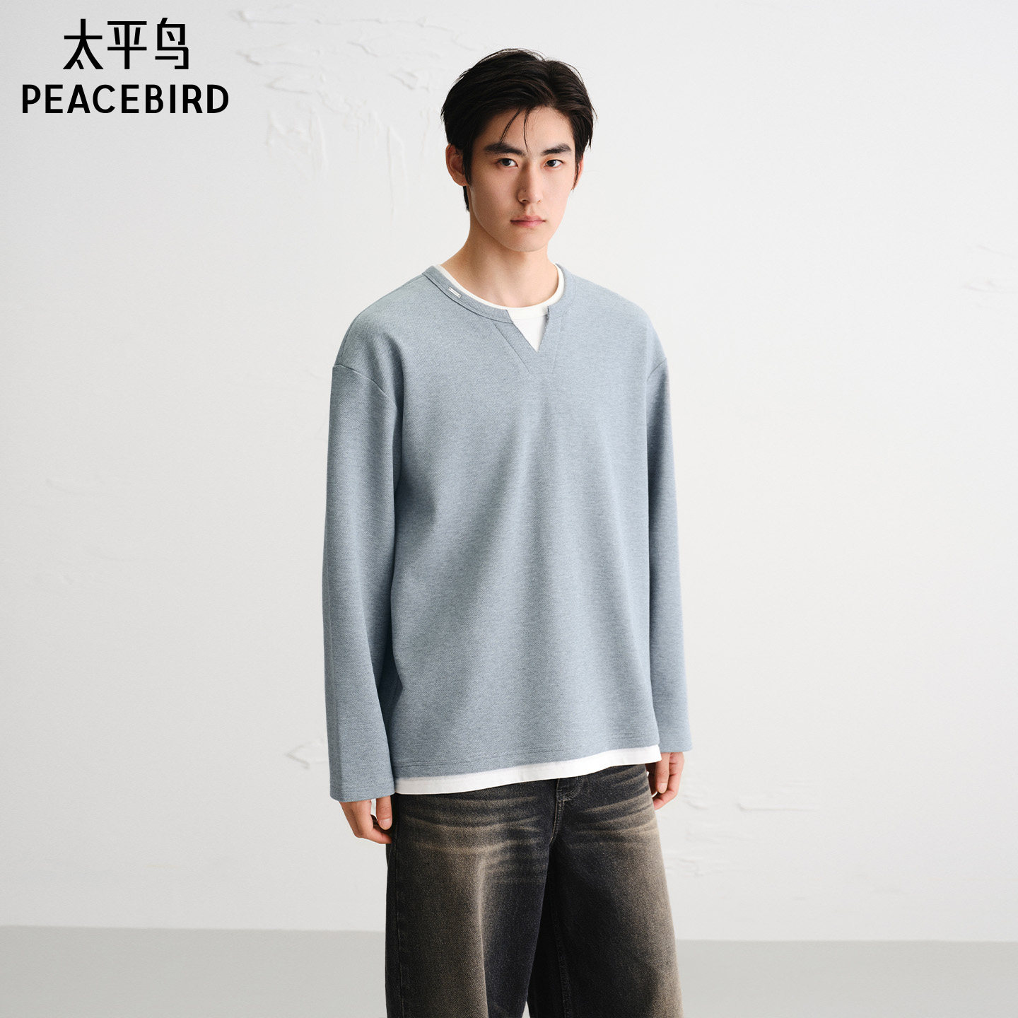太平鸟男装T恤25秋季新款亨利领重磅长袖衫阔版假两件宽松打底衫