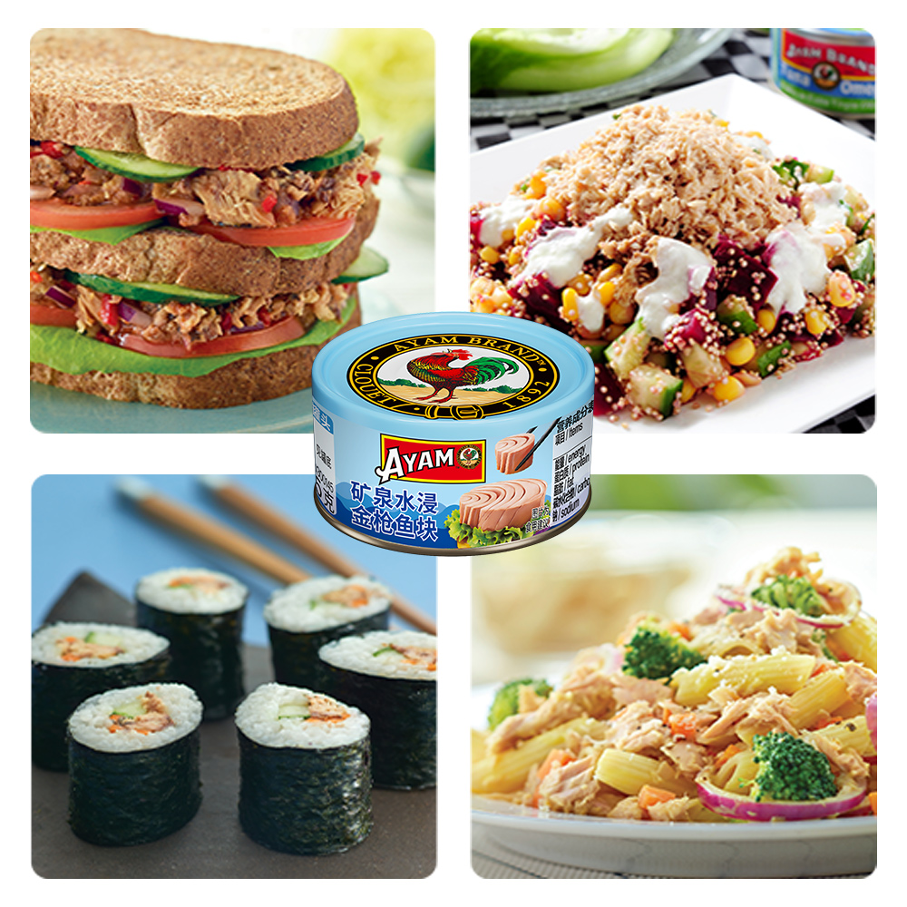 雄鸡标矿泉水浸金枪鱼罐头沙拉吞拿鱼水浸为低脂80g油浸组合沙拉