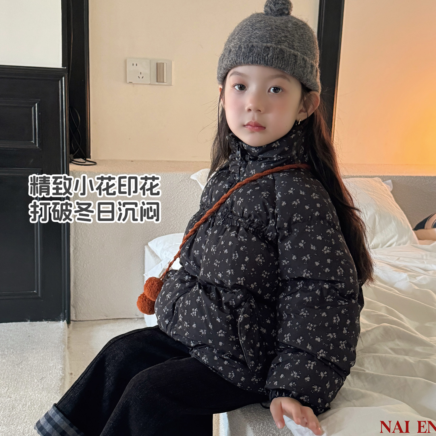 女童韩系小碎花棉服外套秋冬装2025新款儿童满印半高领加厚棉衣