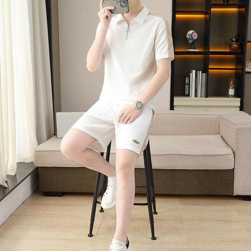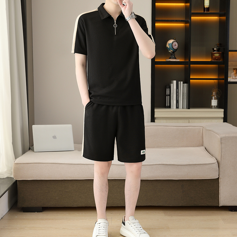 华夫格休闲运动套装男士夏季潮流短袖两件套帅气搭配一套男装衣服