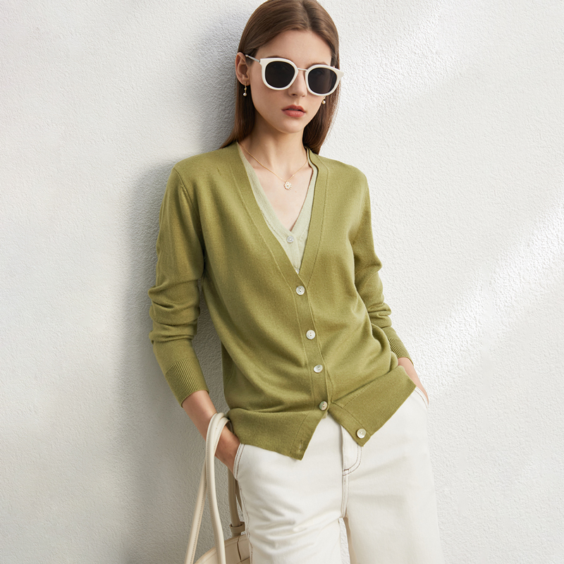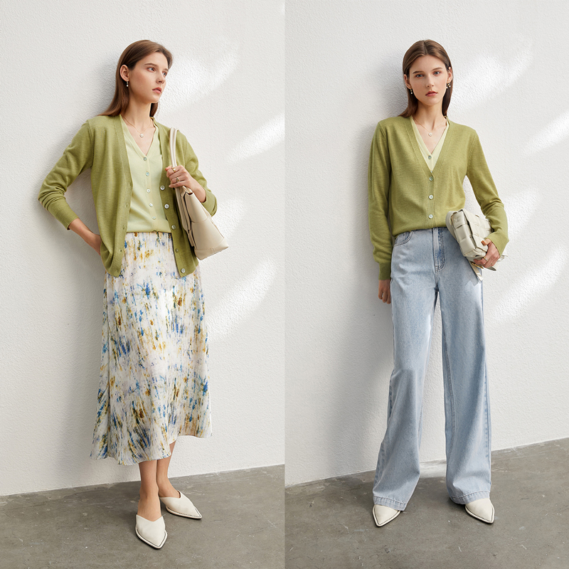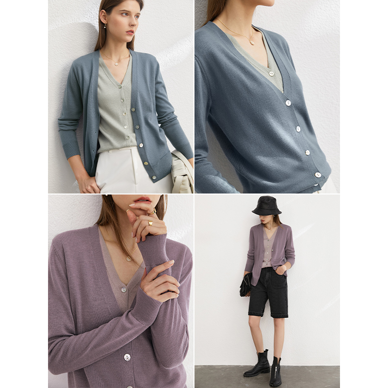 Amii拼接假两件通勤V领毛织开衫