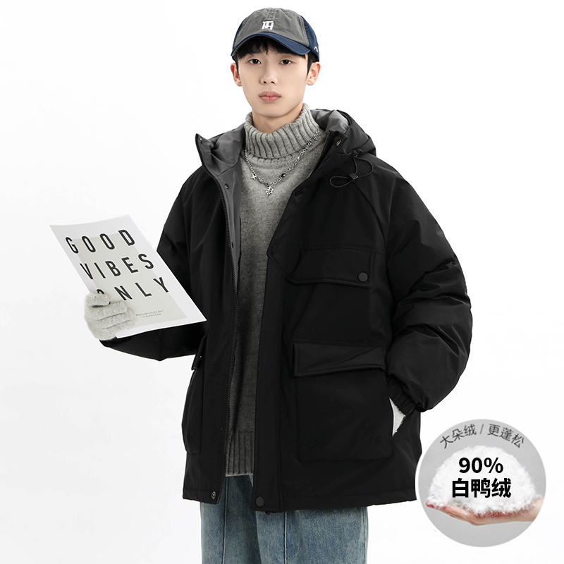 连帽羽绒服2025冬季新款情侣款加厚防风冲锋风衣防寒保暖工装外套