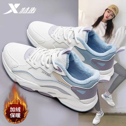 特步棉鞋加绒女鞋2026新款冬季保暖二棉鞋防滑皮面休闲鞋运动鞋女