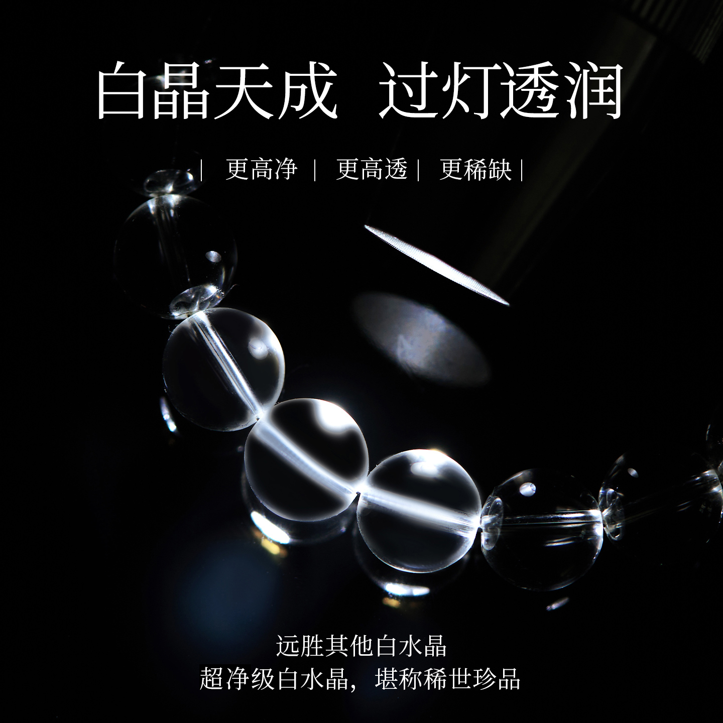 天然白水晶手链女巴西原石散珠情侣白色珠子正品转运水晶手串男夏