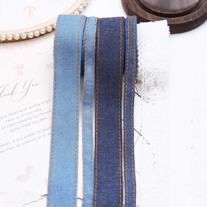 韩版牛仔跳线织带手工布艺儿童发饰diy蝴蝶结女童发夹材料丝带
