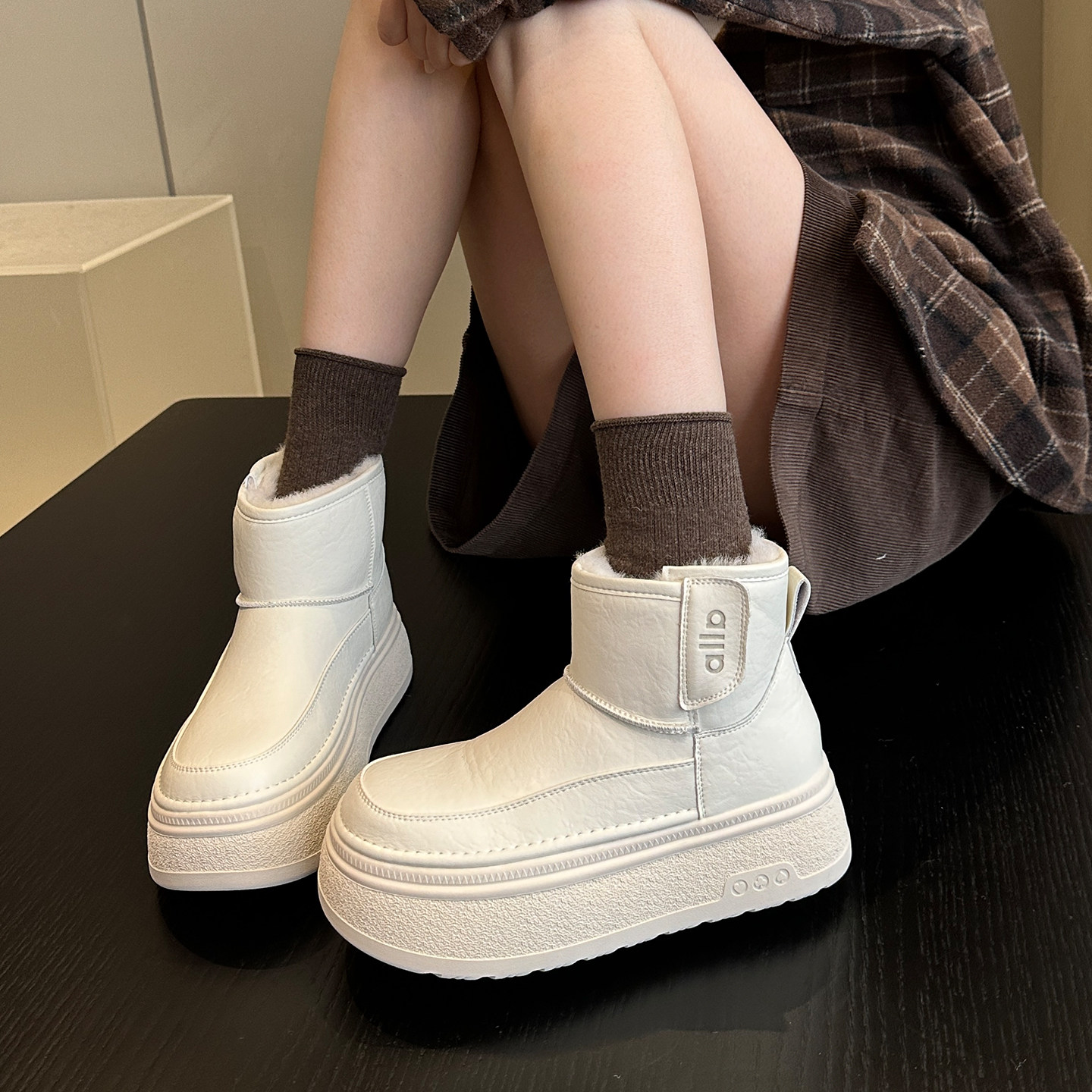 冬季恋人~日系甜酷羊羔毛真皮防水厚底白色雪地靴女东北棉鞋棉靴