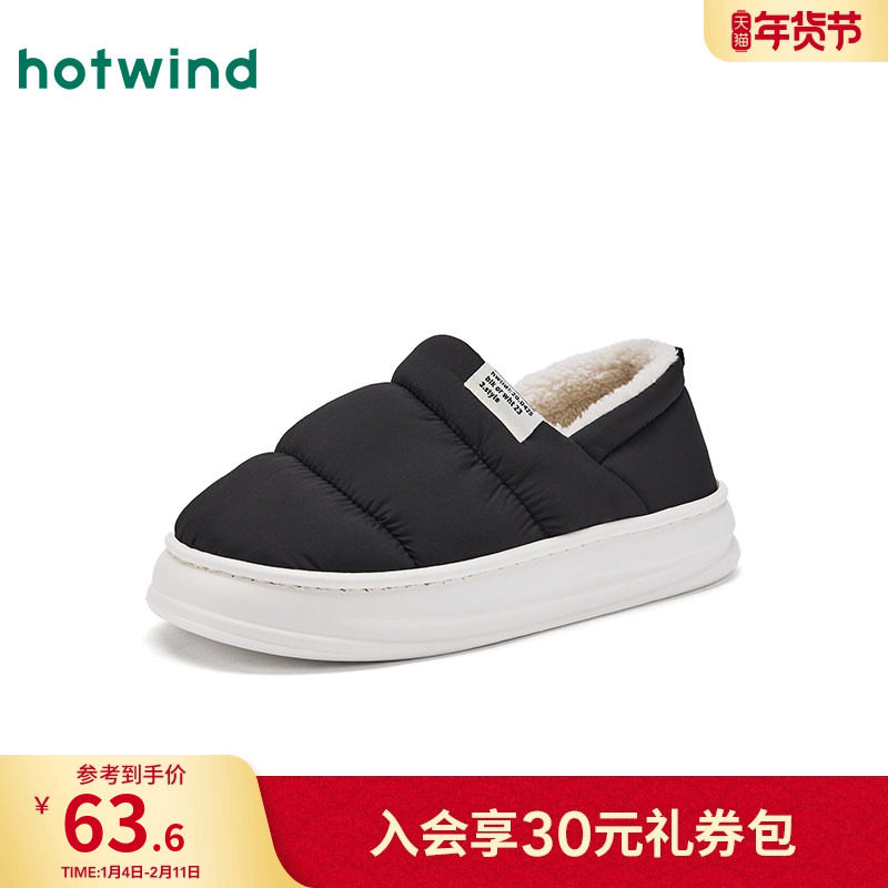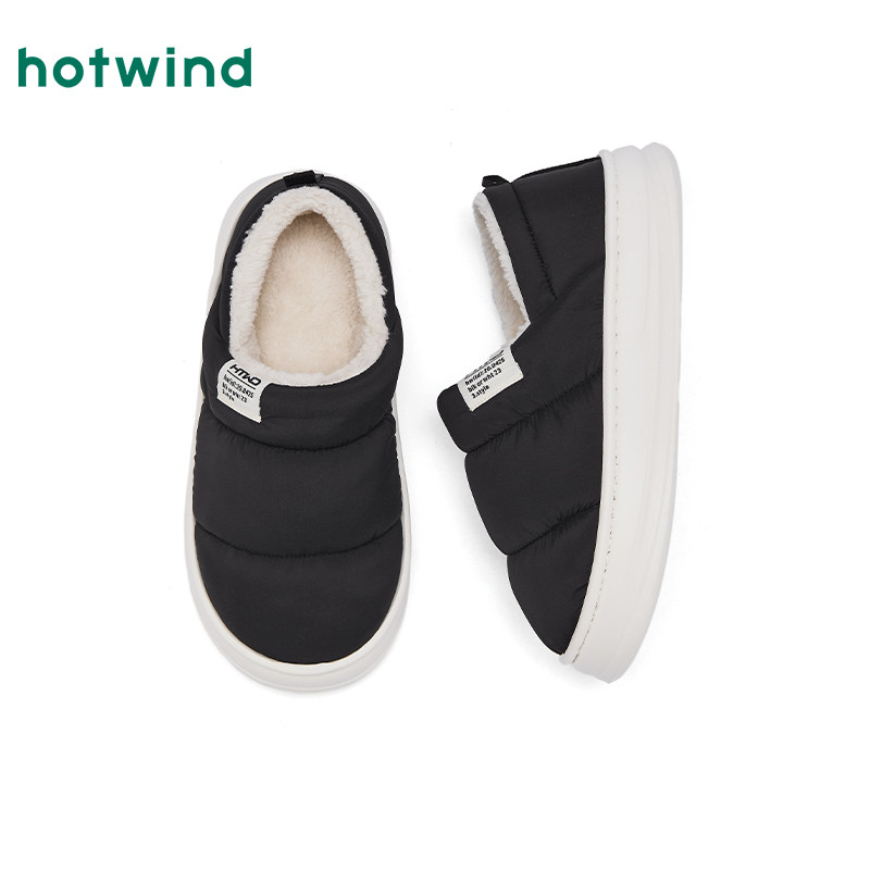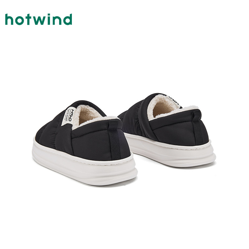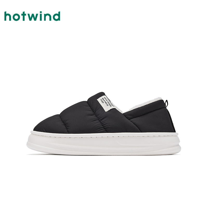 热风男鞋2025年冬季新款男士时尚家居鞋黑色舒适百搭增高保暖棉鞋