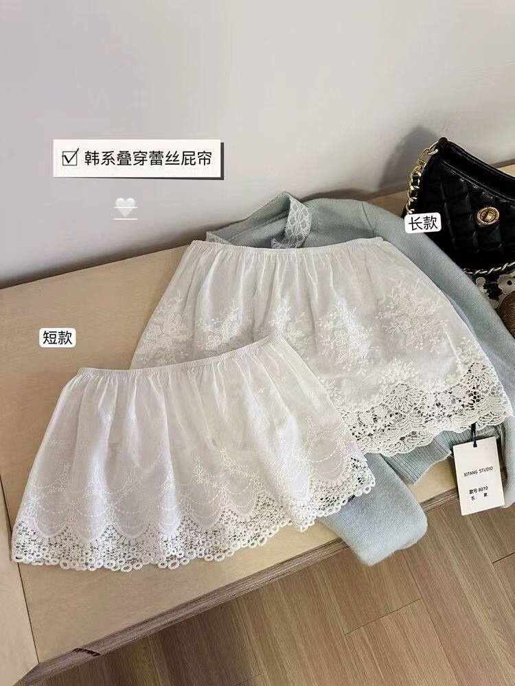 2025叠穿裙屁帘下摆卫衣蕾丝打底神器叠穿打底裙小白裙遮胯半身裙