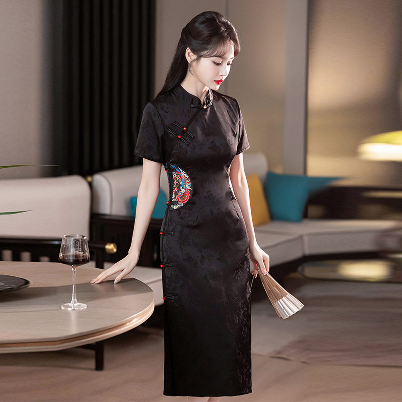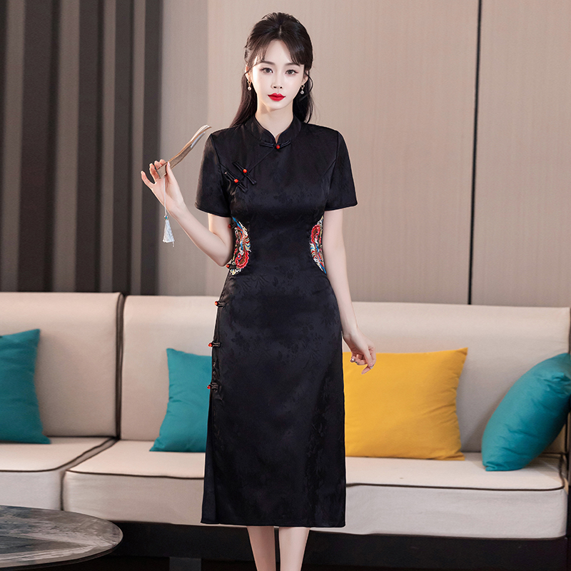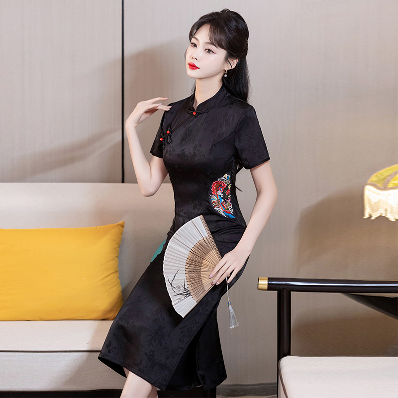 【外贸处理】春夏新中式国风改良版提花连衣裙少女刺绣年轻款旗袍