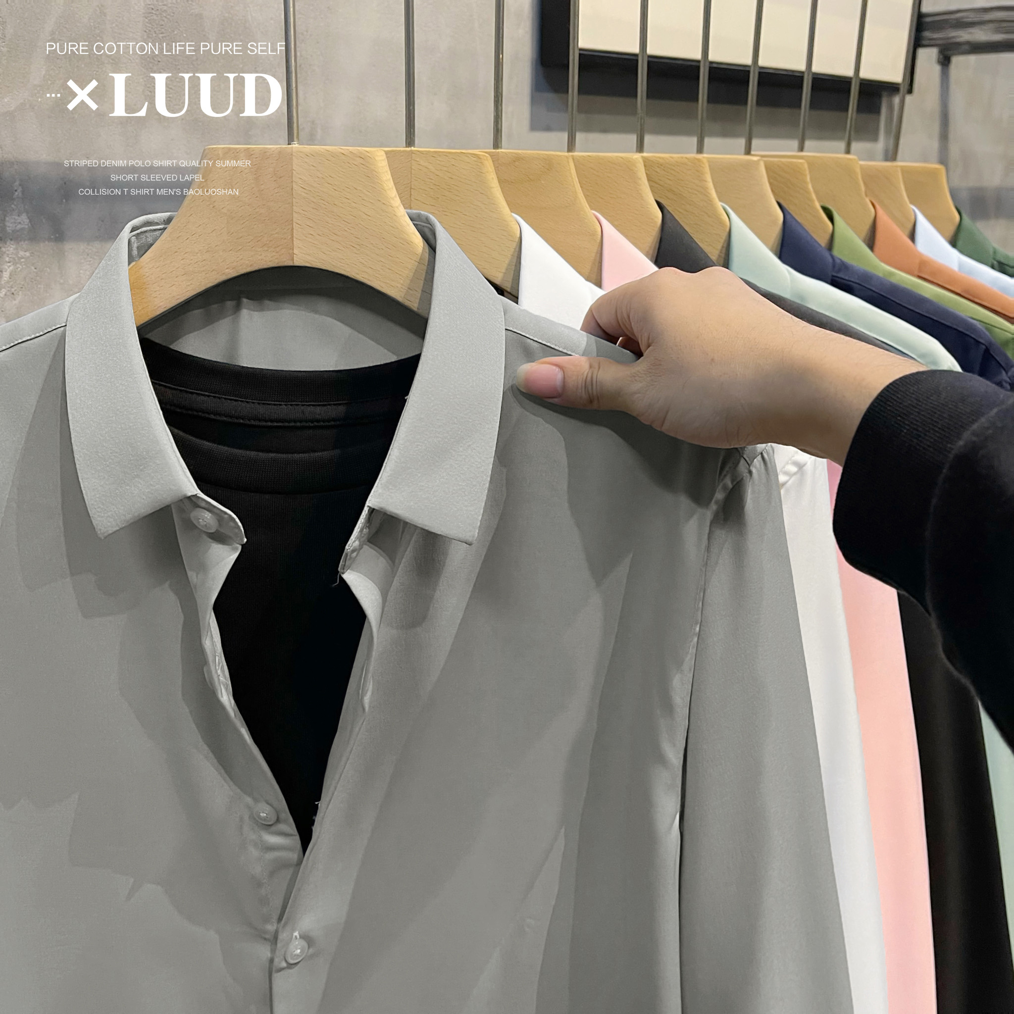 LUUD 丝滑免烫正装男士长袖衬衫高级感绅士英伦纯色翻领秋季寸衣