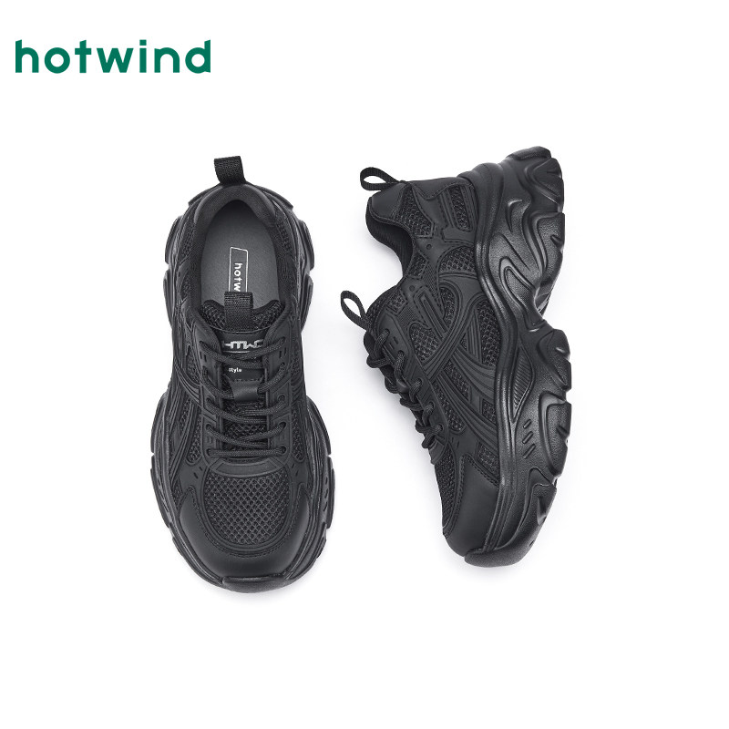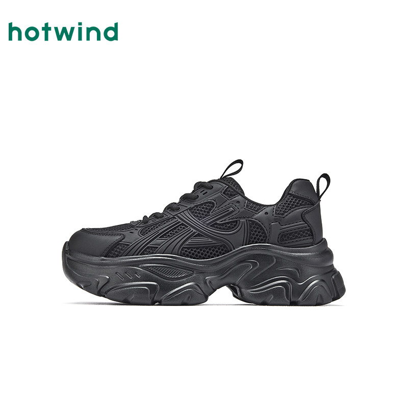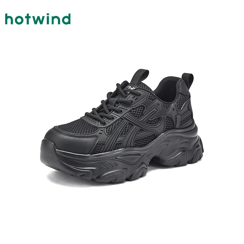 热风厚底老爹鞋女款2026年春季新款黑色运动休闲鞋轻便增高女鞋子