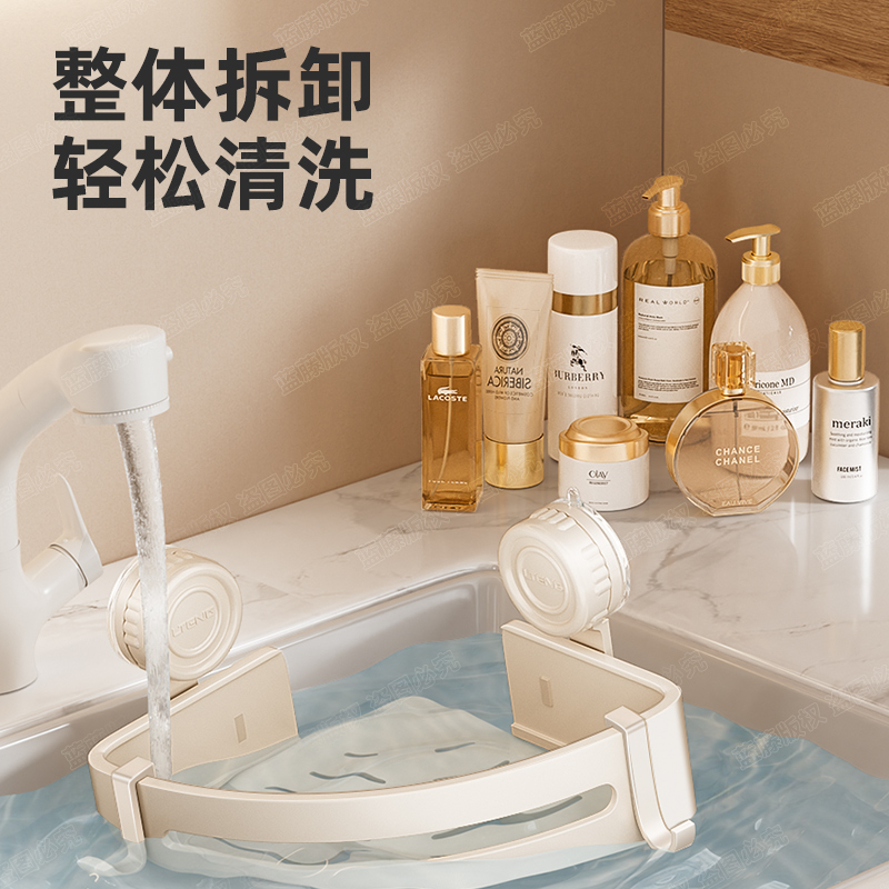 卫生间吸盘置物架免打孔壁挂洗漱台厕所淋浴墙上收纳浴室三角架子