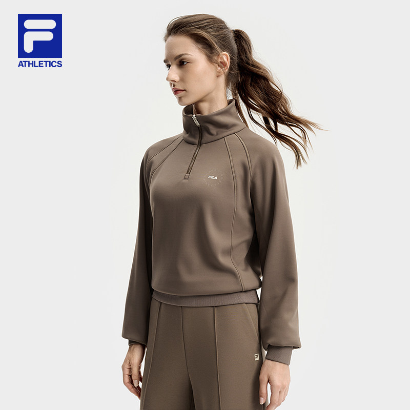 FILA 斐乐官方女子套头卫衣2025冬新款健身运动基础加绒针织上衣