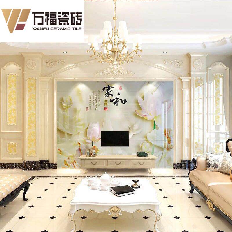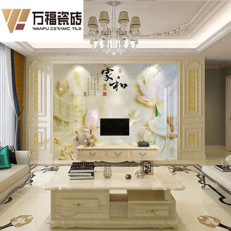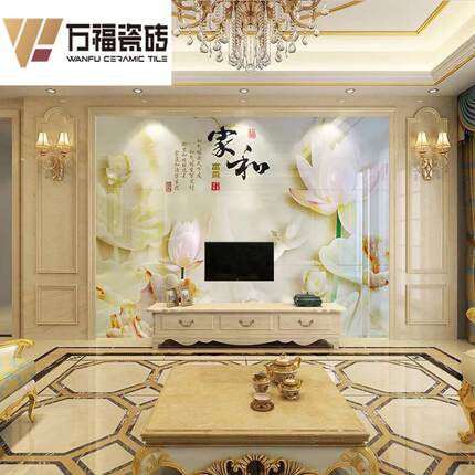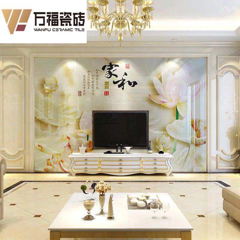 3D现代简约瓷砖背景墙 中式客厅电视背景墙砖微晶石雕刻 家和富贵