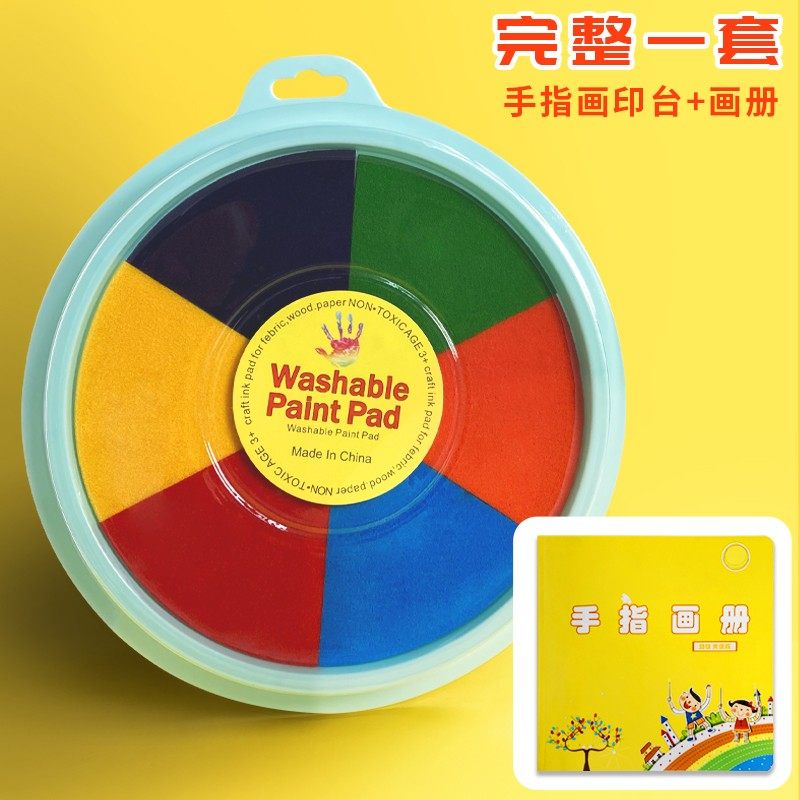 儿童彩色印泥手指画手印多色按指纹手印手掌画印泥印盘幼儿园无味