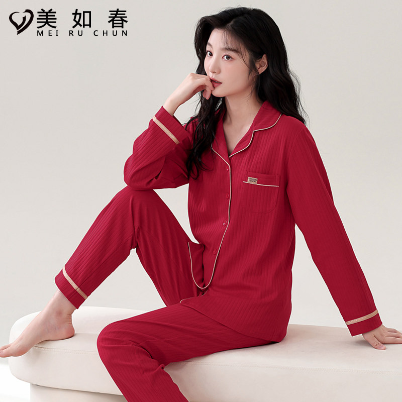 莱卡【高档面料】睡衣女秋冬季纯棉红色喜庆结婚家居服本命年套装