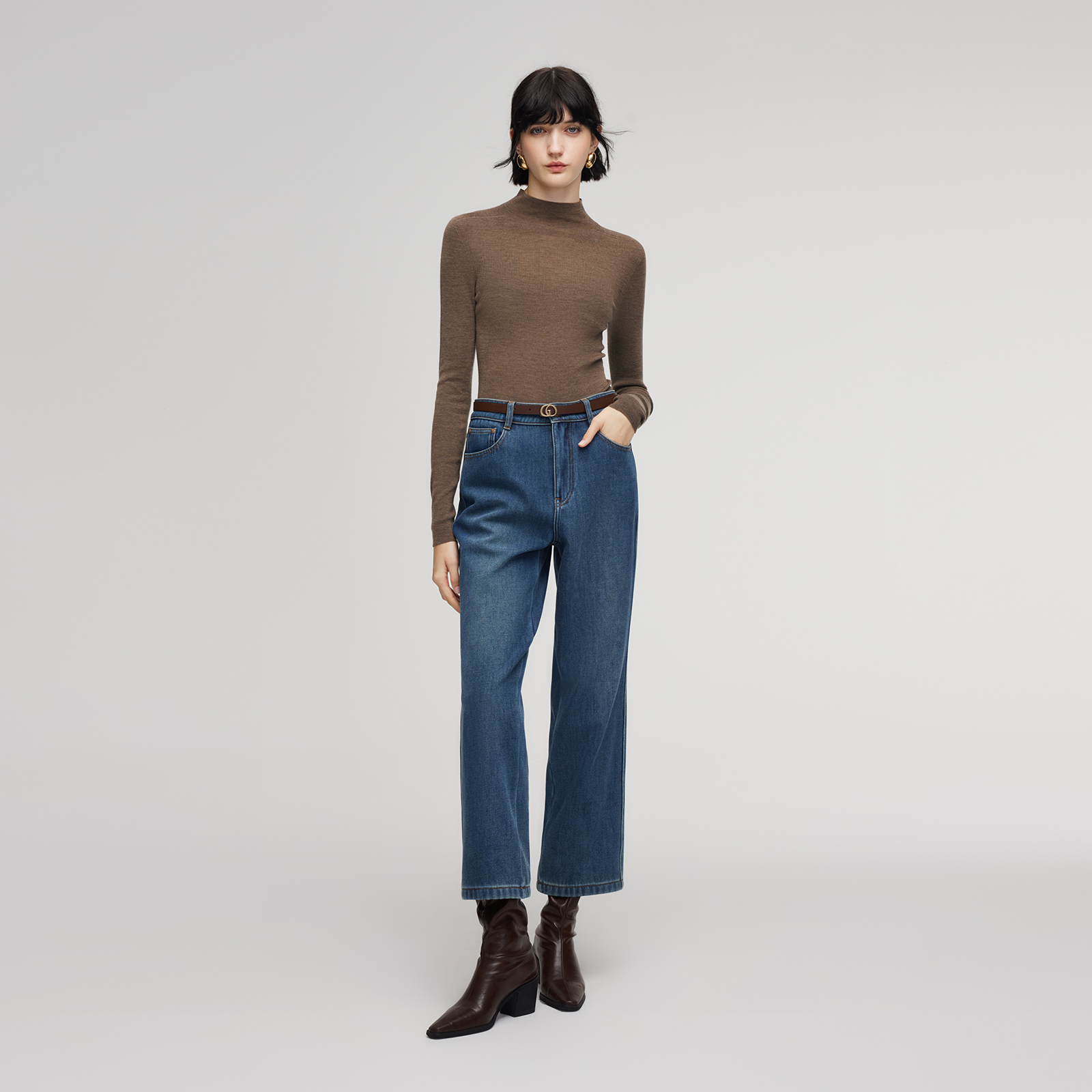 歌莉娅抓绒牛仔裤女2025新款冬季高知穿搭高腰直筒长裤厚款九分裤