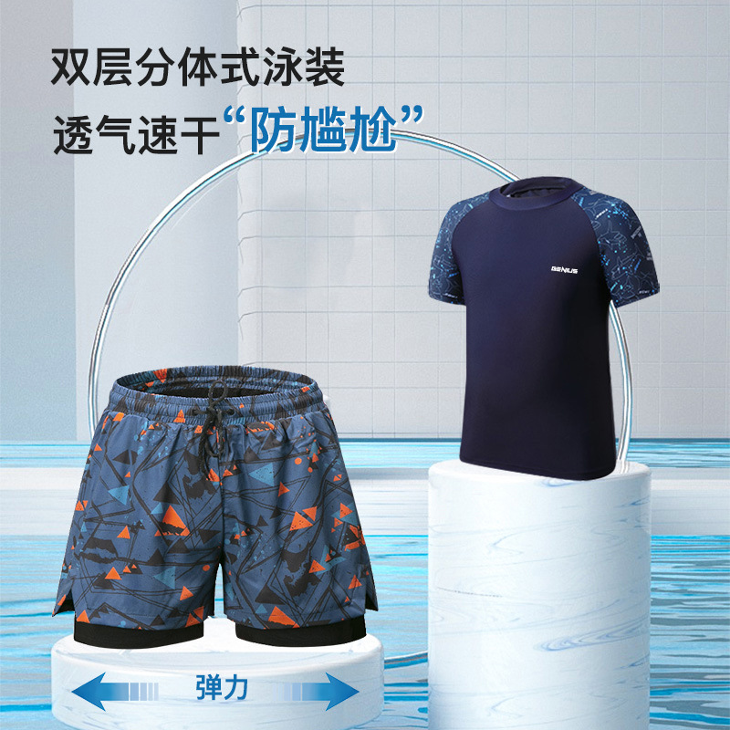 法国CherryKoko胖童泳衣男童夏季分体套装加大码儿童青少年男孩