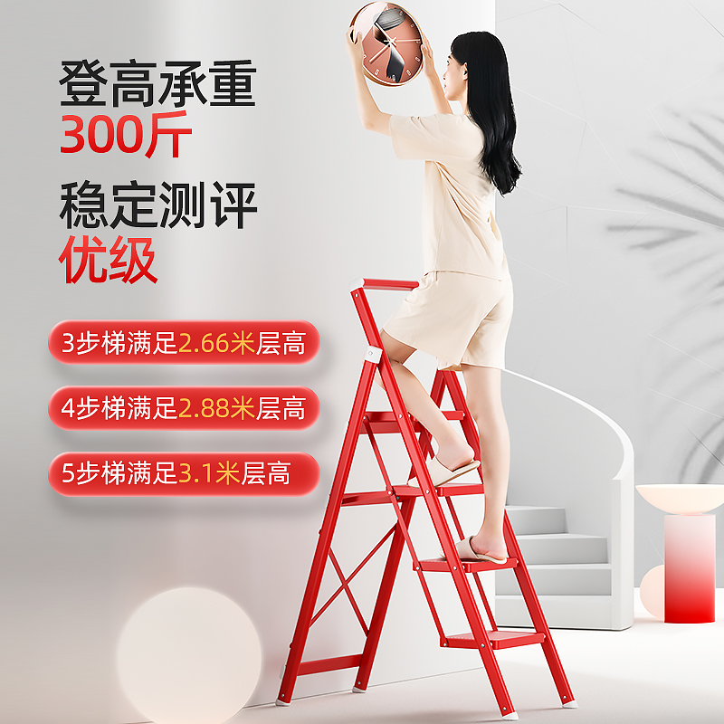 肯泰家用梯子折叠多功能伸缩室内加厚人字梯三四步登高爬梯小梯凳