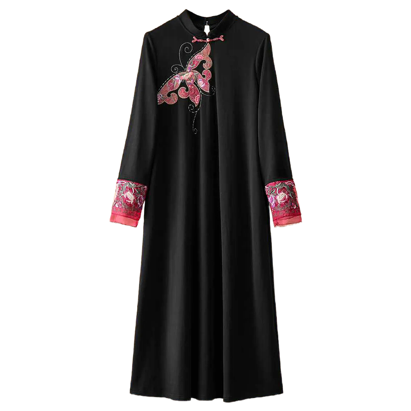 2025秋季新款新中式国风重工刺绣气质立领斜襟民族风连衣裙长裙女