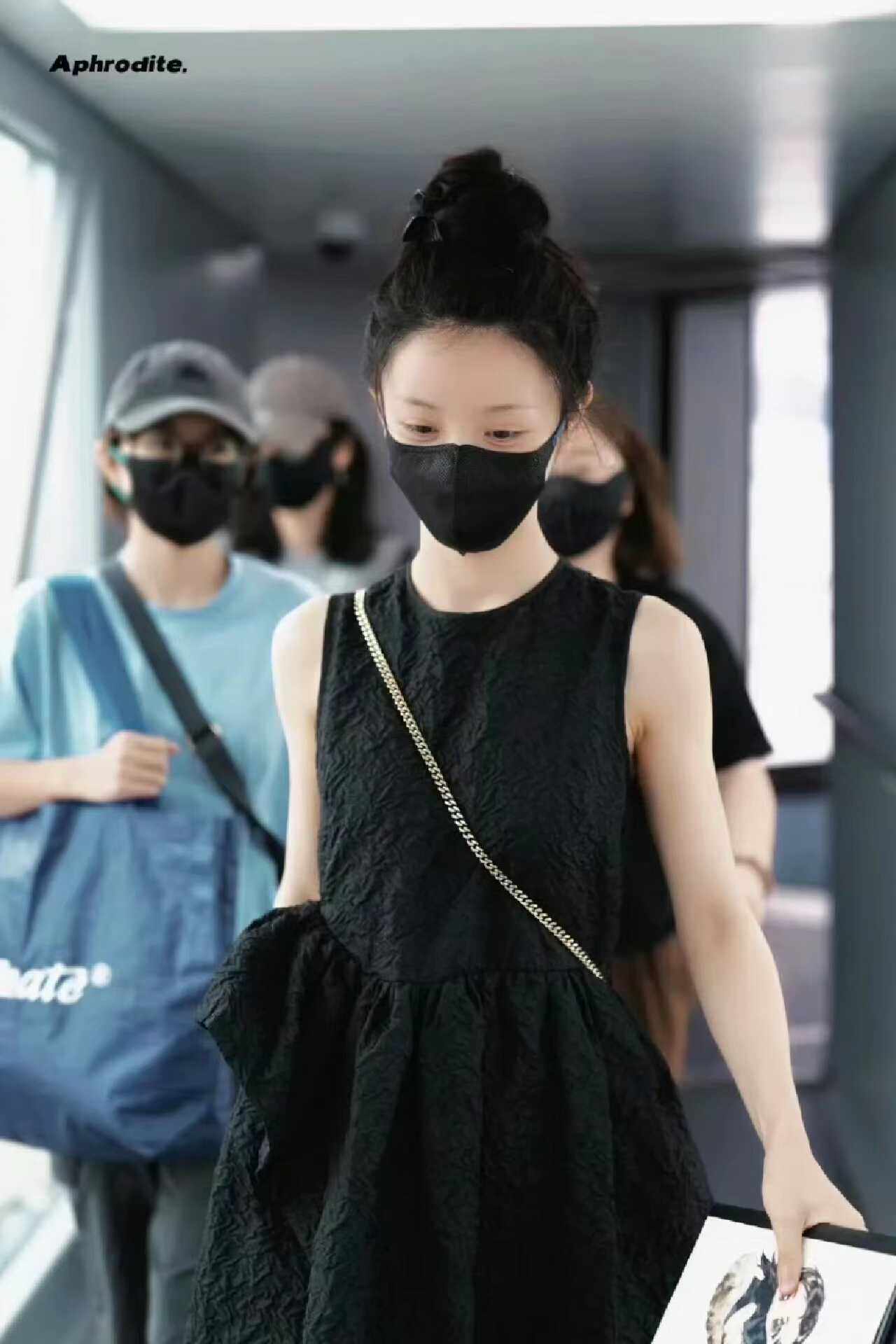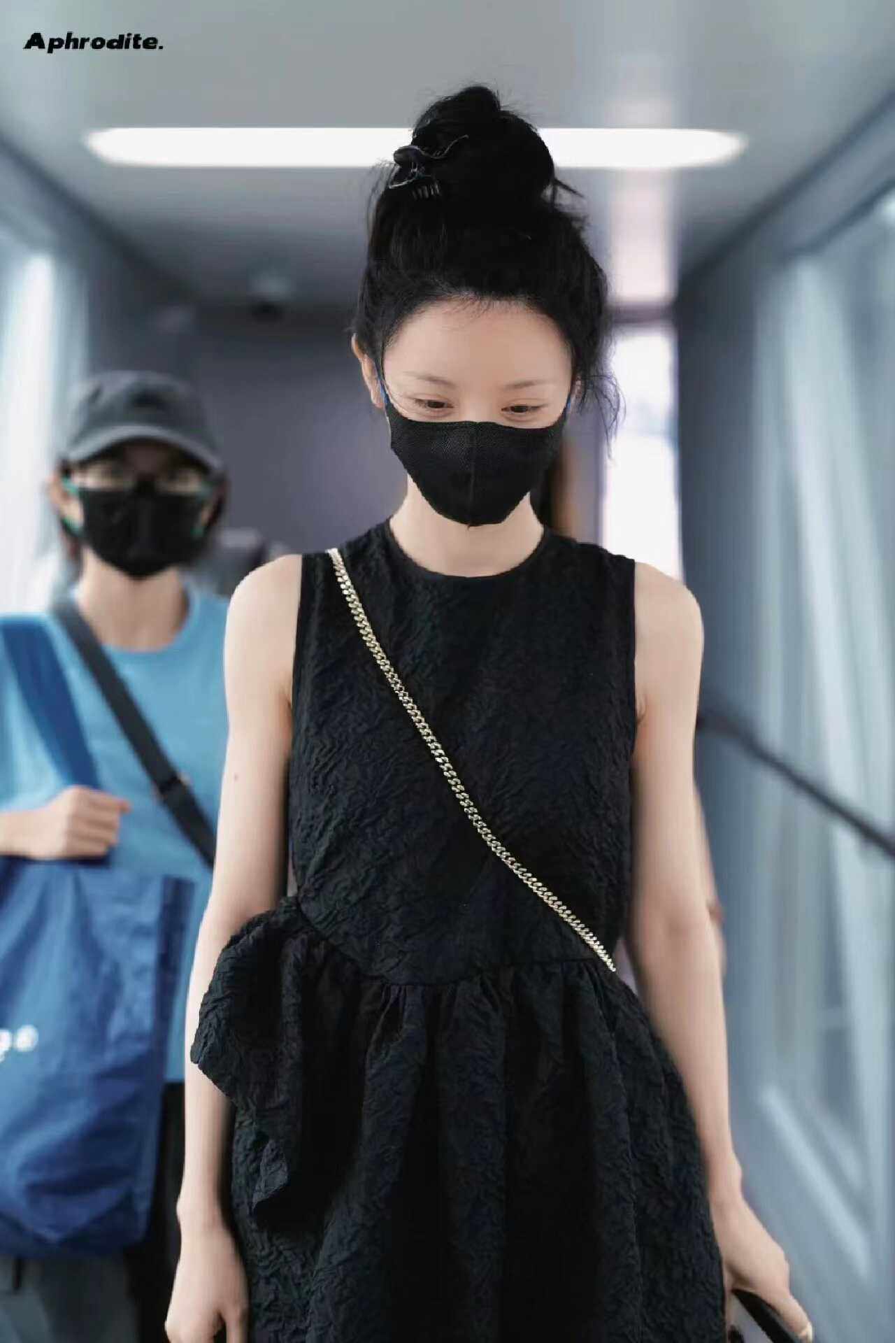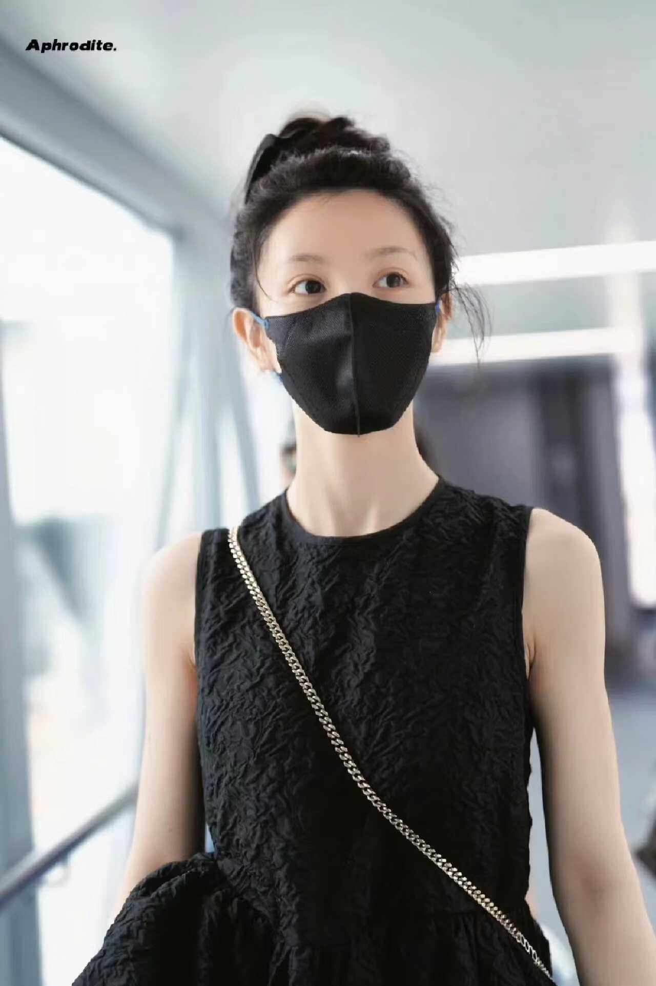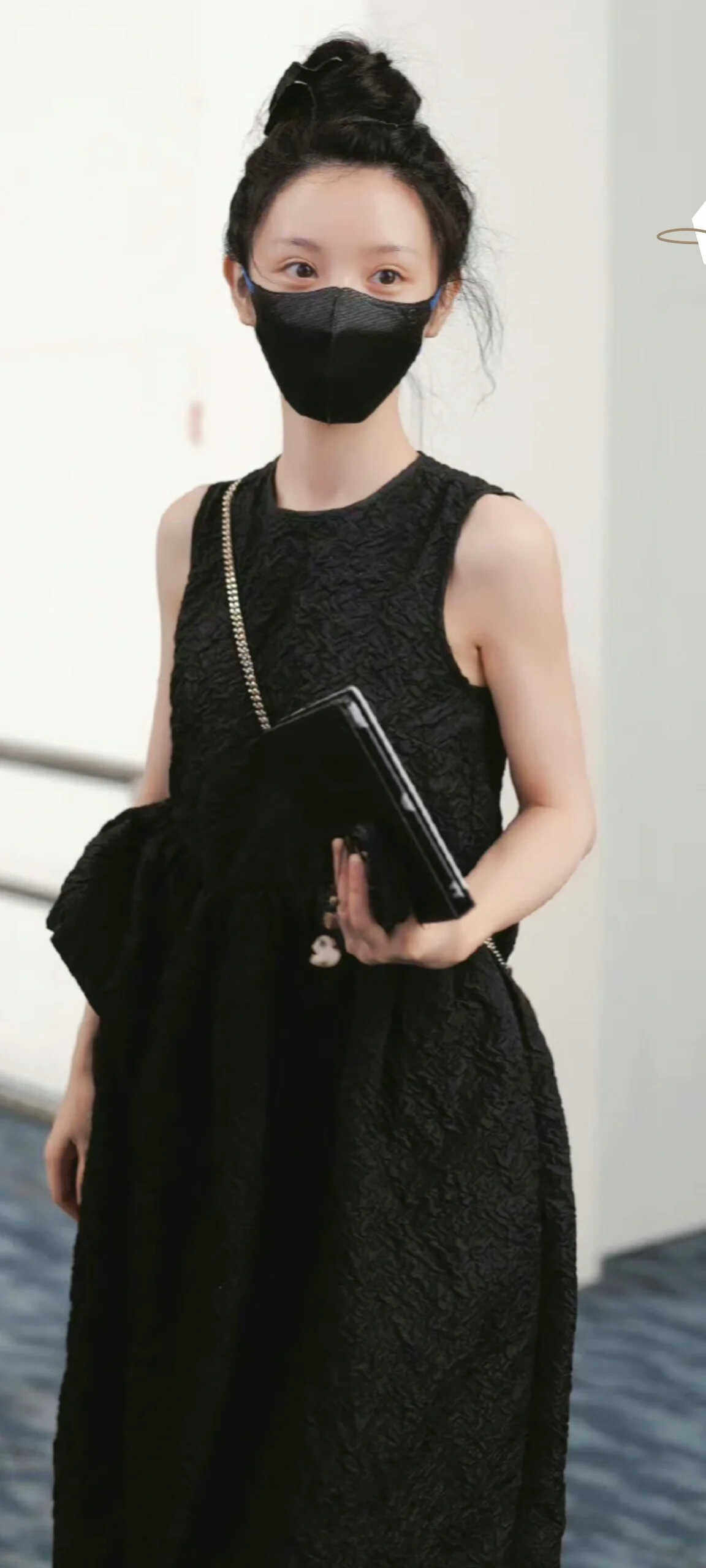 田曦薇明星同款黑色休闲收腰显气质御姐范圆领无袖夏季长款连衣裙