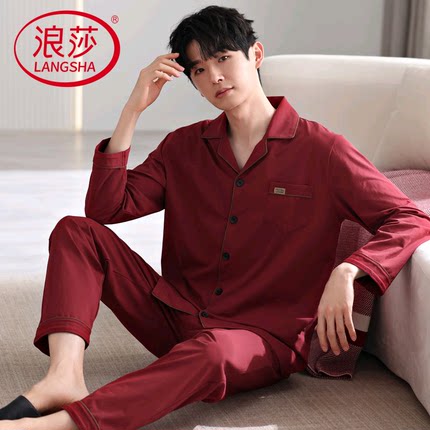 浪莎纯棉睡衣男春秋季本命年套装
