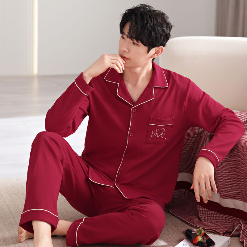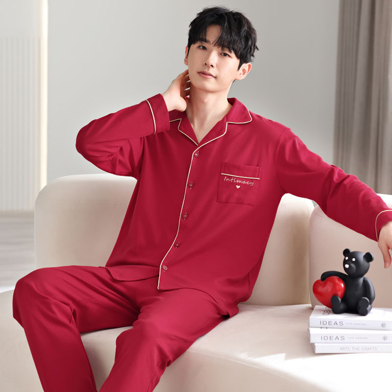 浪莎2025新款红色结婚本命年睡衣男春秋季长袖纯棉韩范家居服套装