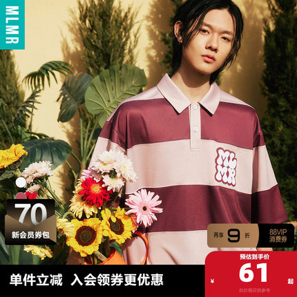 MLMR夏季情侣款翻领T恤复古舒适经典条纹男士POLO衫男款短袖男装