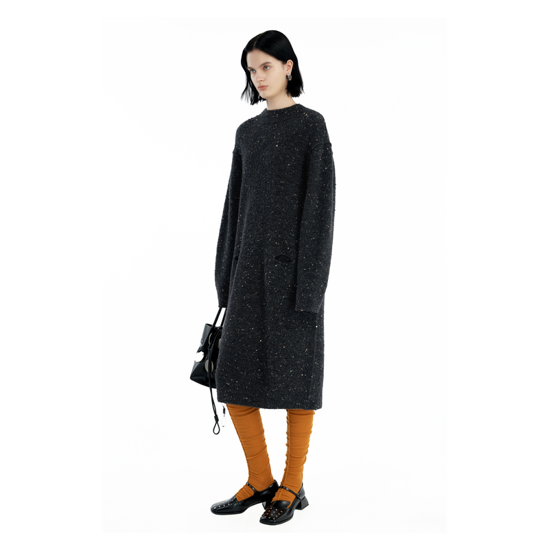 【羊毛彩点圈圈纱】IIIVIVINIKO冬新款毛呢宽松连衣裙M441104620D