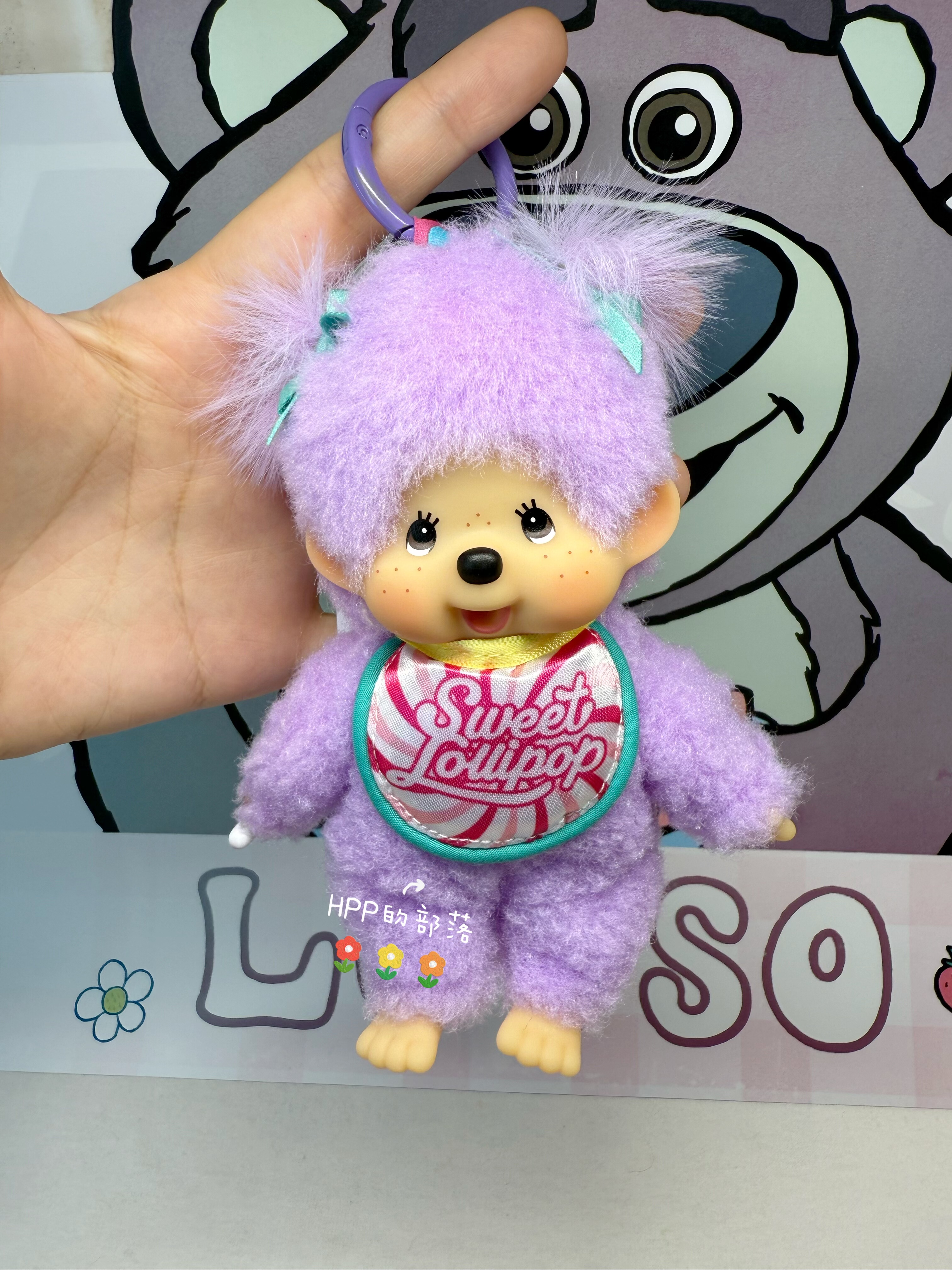 日本正版 Monchhichi 蒙奇奇 棒棒糖系列 紫色黄色卷毛羊角辫挂件
