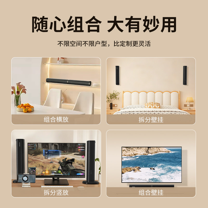 阿维卡电视音响回音壁环绕投影仪音箱立体声蓝牙客厅家用壁挂立式