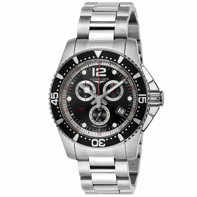 浪琴康卡斯系列钢带黑盘多功能潜水表钢带石英男表L3.843.4.56.6