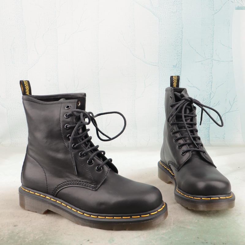 牛皮革圆头中跟通勤短筒马丁靴