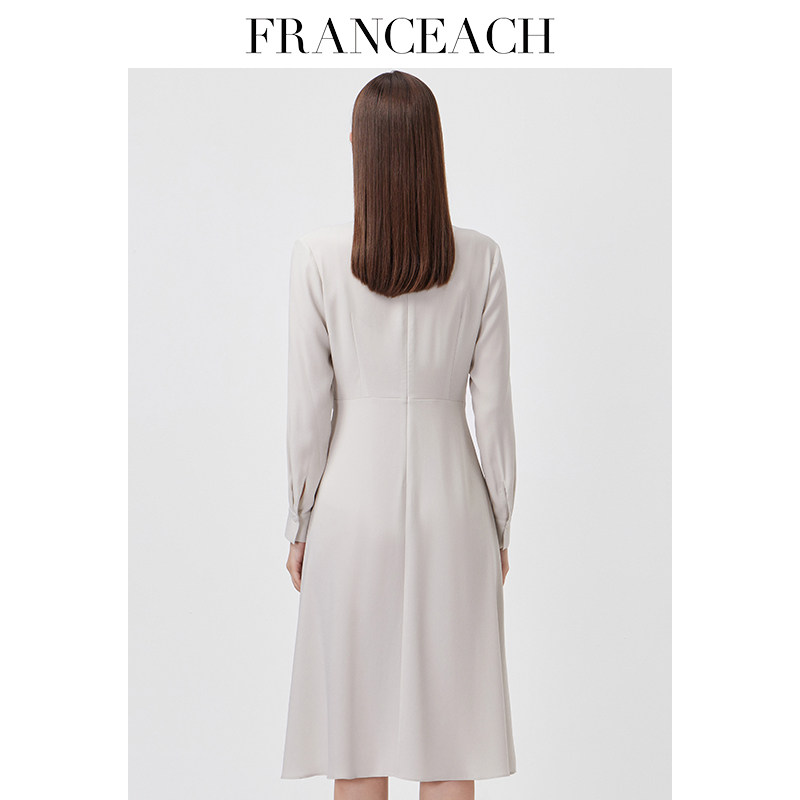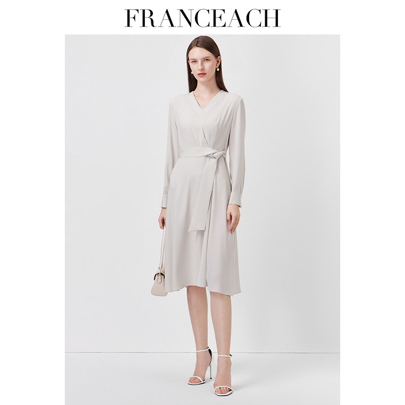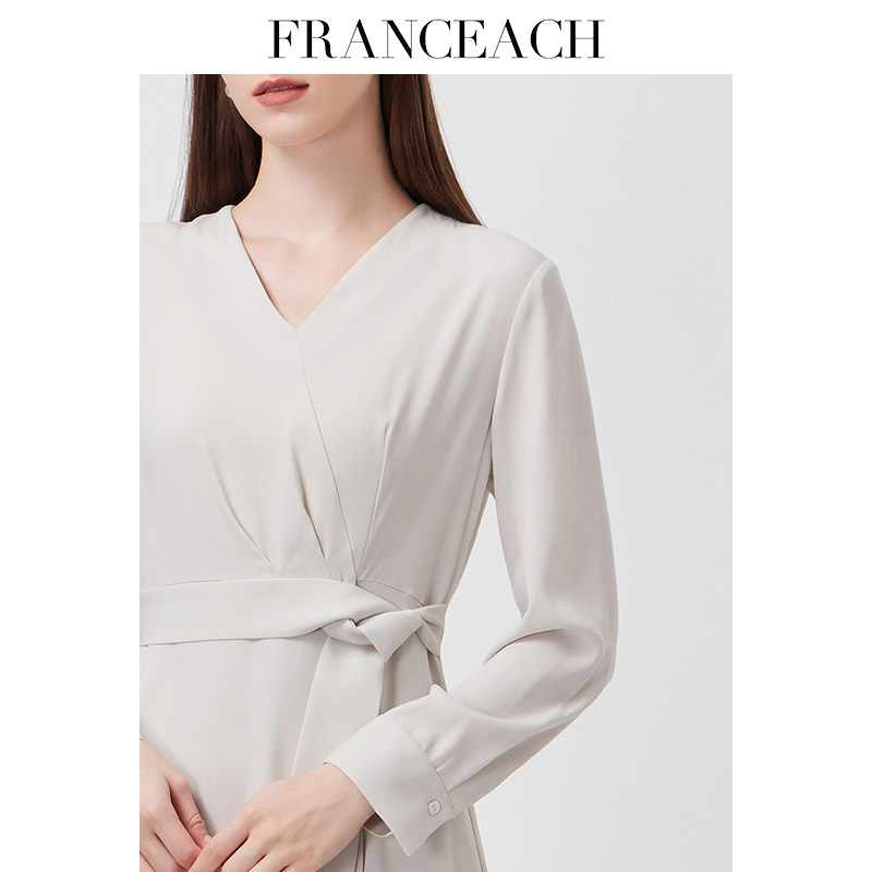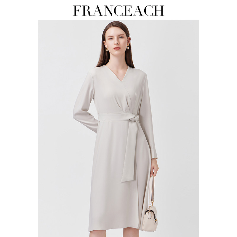 法涵意弛2024春季新款法式V领绑带气质收腰显瘦高级感醋酸连衣裙