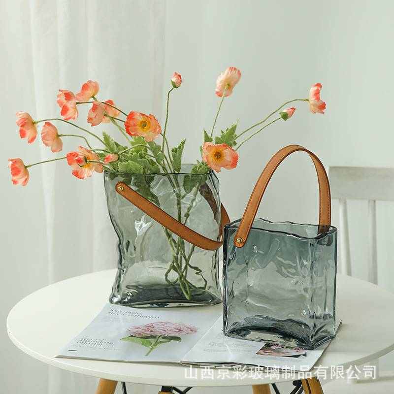 网红原色玻璃包包花瓶手提篮摆件创意轻奢客厅水养插花鱼缸装饰品