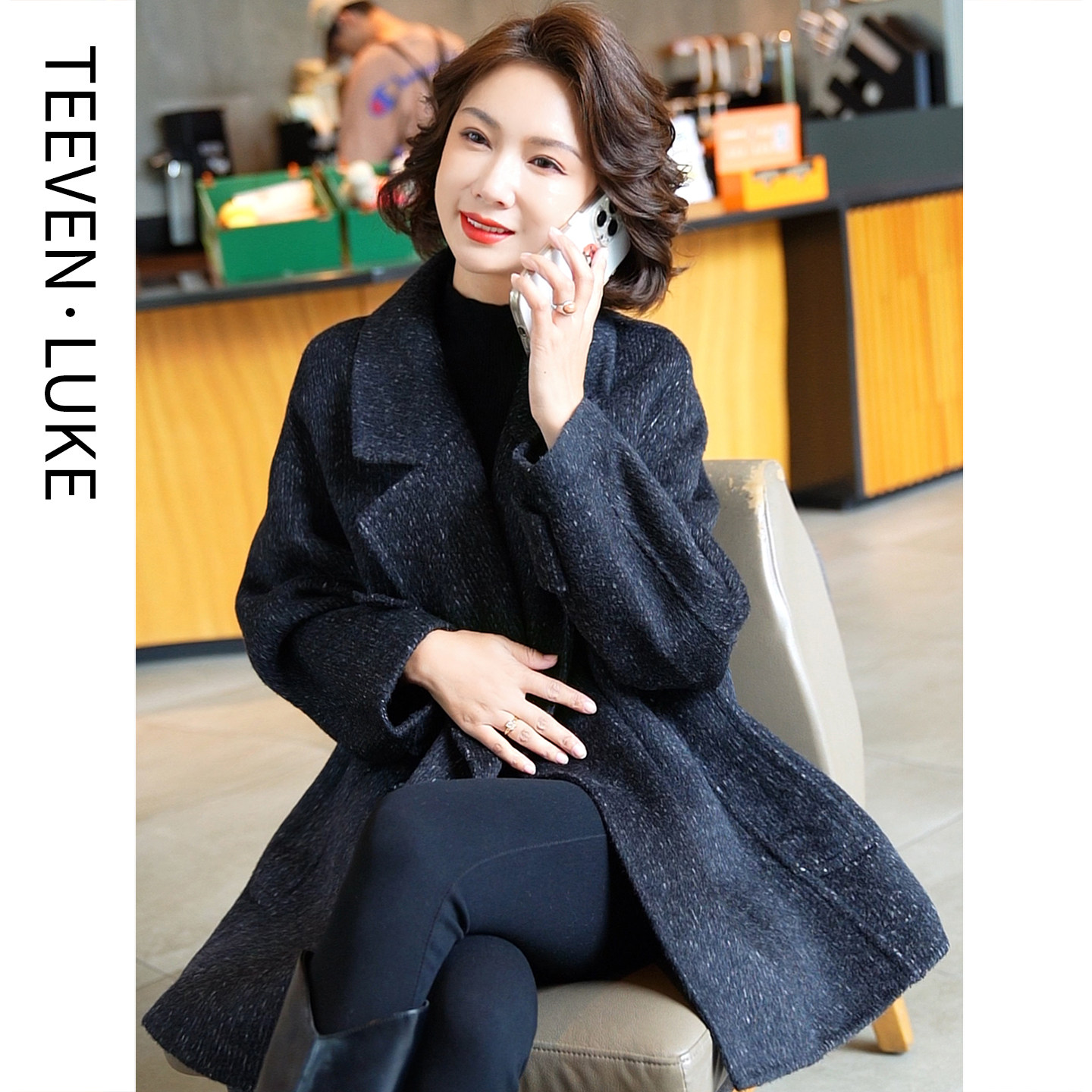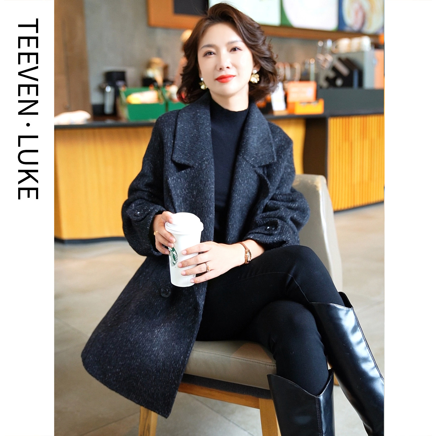迪芬璐嘉双面呢羊毛大衣气质