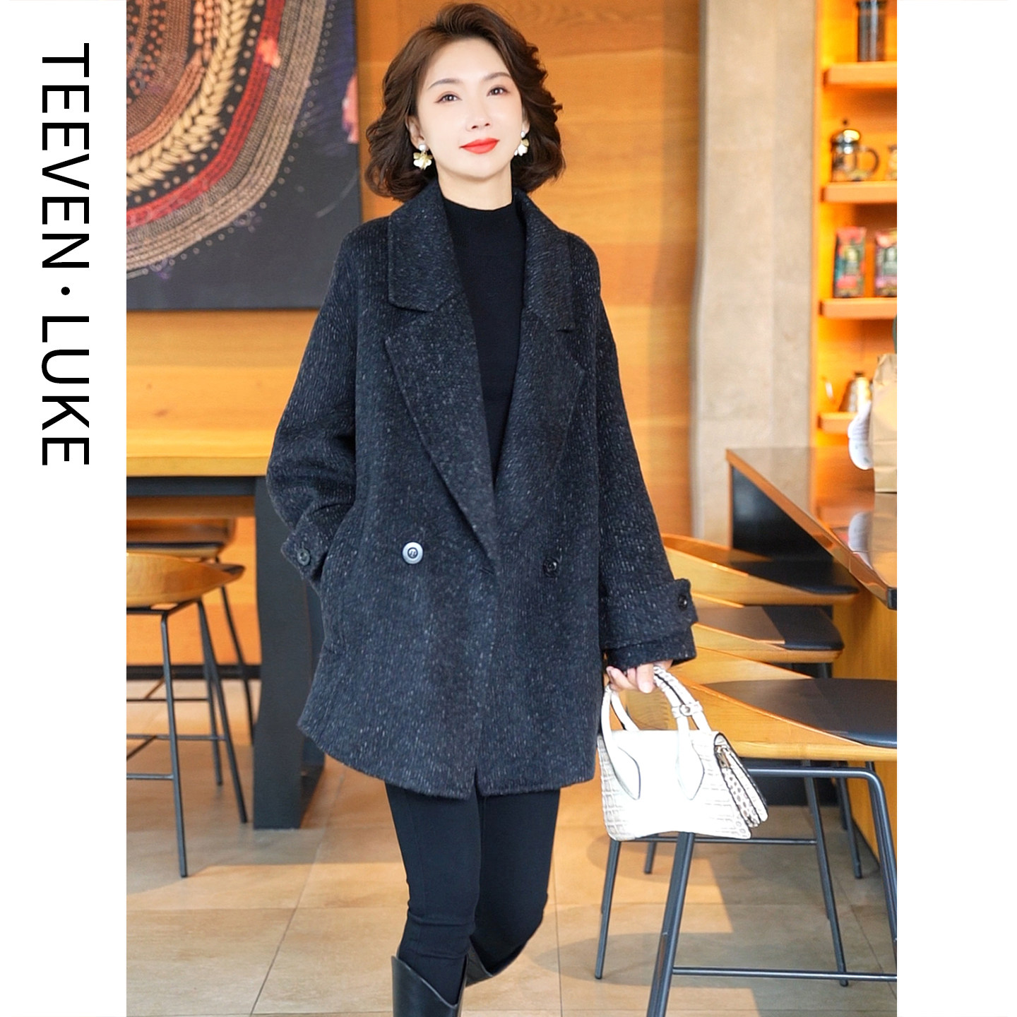2025年秋冬季新款羊毛双面呢大衣女装短款小个子西装毛呢外套韩版
