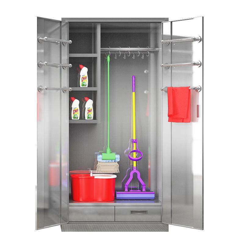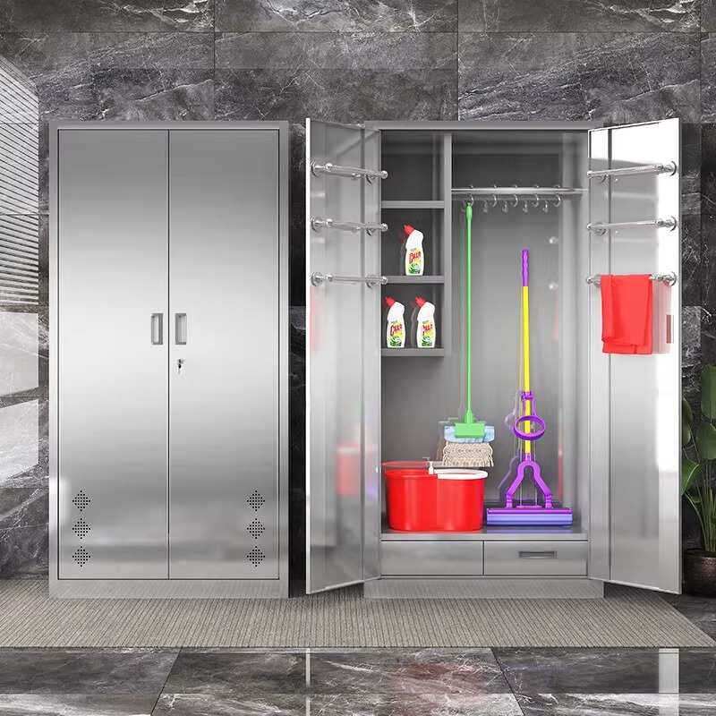 304不锈钢清洁柜学校卫生柜酒店工具保洁柜阳台拖把柜杂物收纳柜