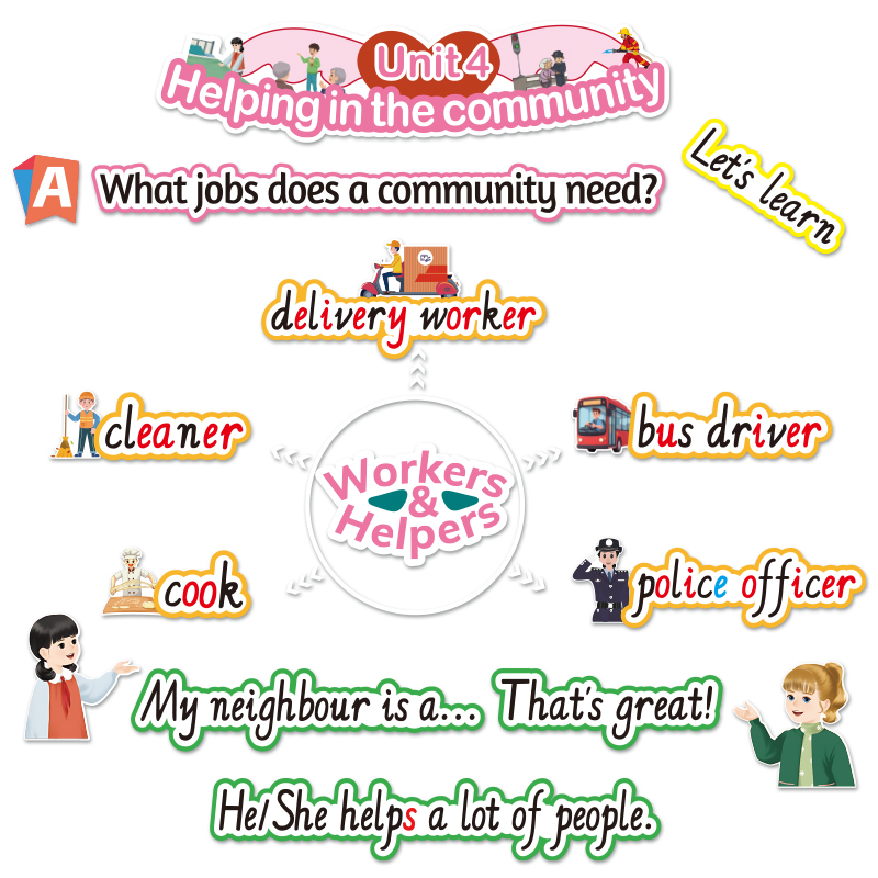 2025新4四年级上册人教版PEP小学英语云朵字单词卡片句子词图一体公开课堂黑板贴板书设计教学教具道具词条