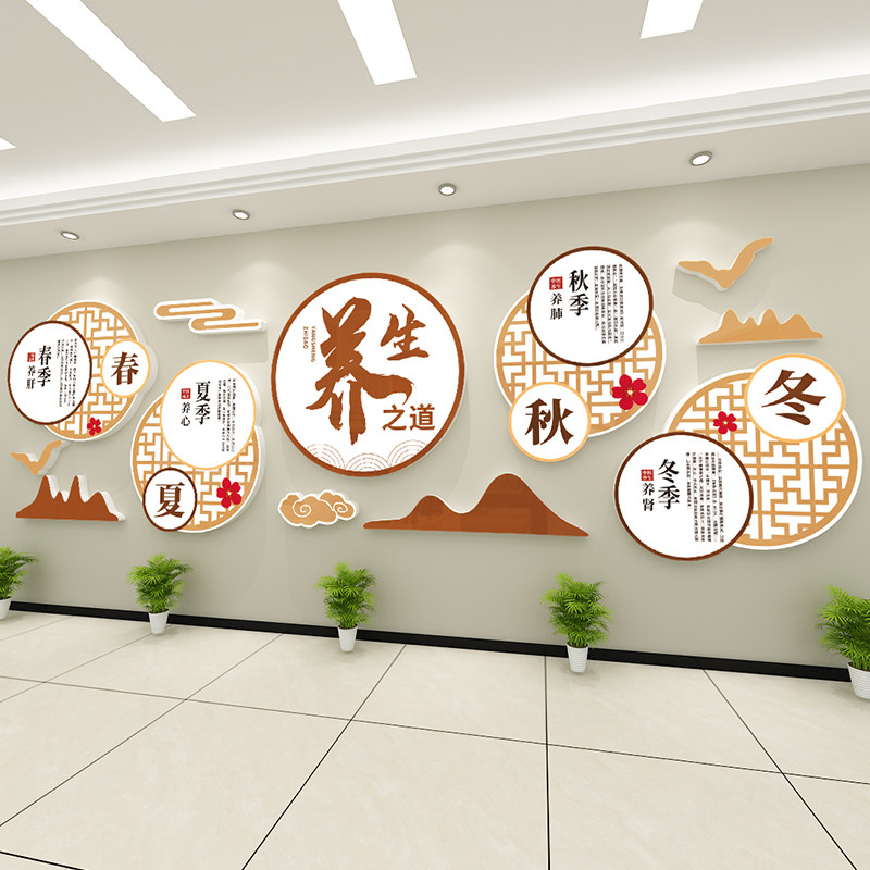 中医养生馆文化背景墙面装饰雪弗板定制理疗针灸推拿刮痧拔罐墙贴