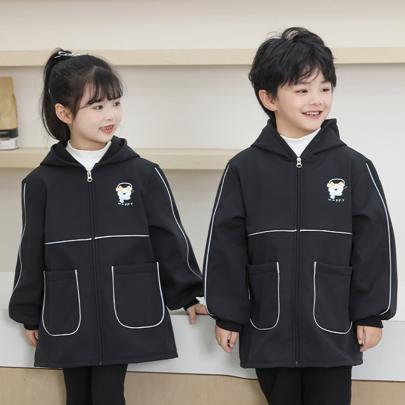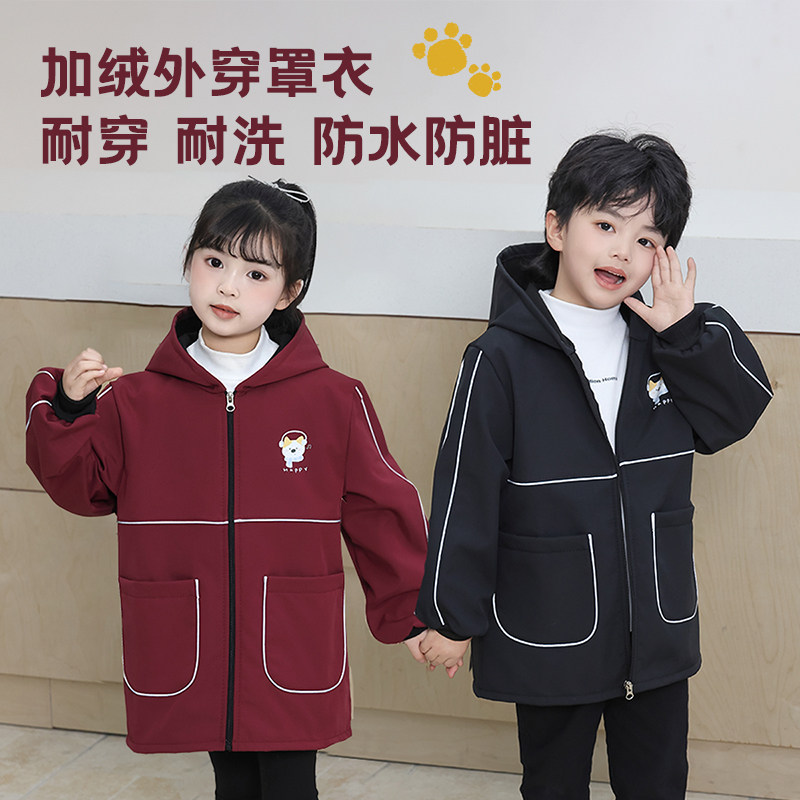 冬季儿童罩衣加绒防水羽绒服外套防脏吃饭幼儿园宝宝围裙加厚新款