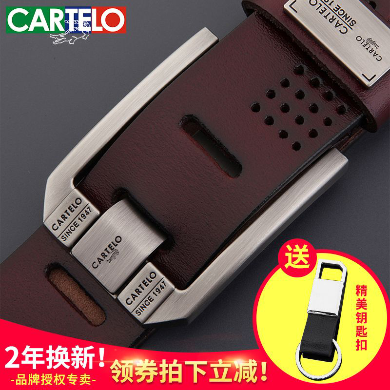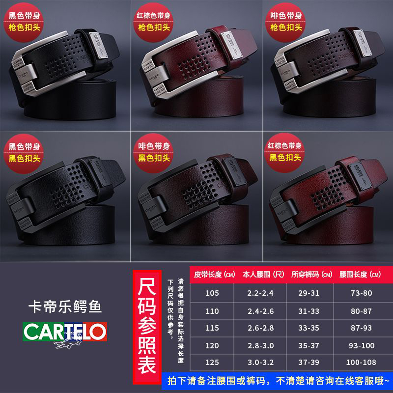 正品卡帝乐鳄鱼皮带男真皮针扣腰带男士牛皮休闲加宽裤带韩版潮